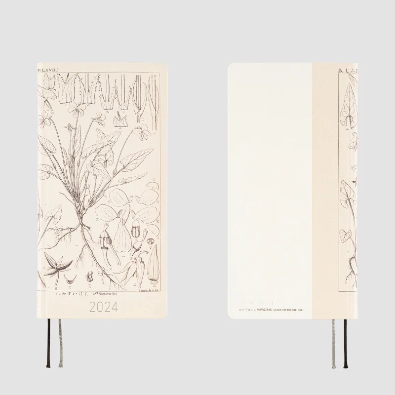 You might also like the additional products in collaboration with Dr. Tomitaro Makino’s botanical illustration! They include an Original size cover “Koshinso,” Cousin size techo cover “Koshinso,” HON “Yamazakura” in A6 size and A5 size, Weeks book “Shihai Sumire,” Hobonichi pencil boards now available in three sizes with the Cousin size joining the lineup, and the Hobonichi Plain Notebook “Yamazakura” in A6 and A5 sizes.