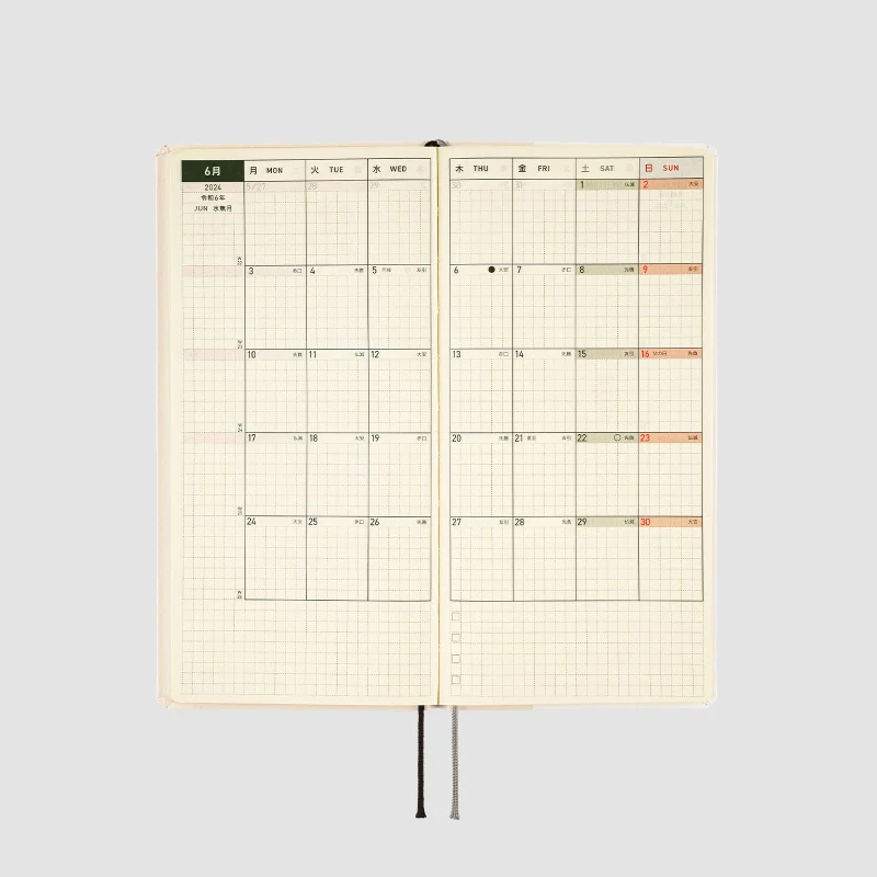 | Paper Type / Binding | Thin, light Tomoe River S paper resistant to bleeding and designed for planners / Stitch-binding |