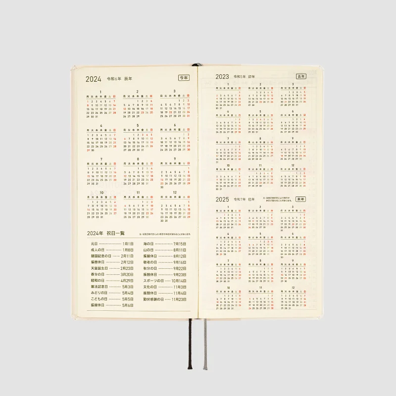 | Bonus Pages | Shorthand Note-Taking / Using Common Items to Measure Size / My 100 / An Interview with Myself / Seasonal Sweets to Make at Home / Solar Terms / Emergency Preparedness / Age Table / Conversion Chart / Getting the most of Hobonichi / Contact List / Personal Notes |