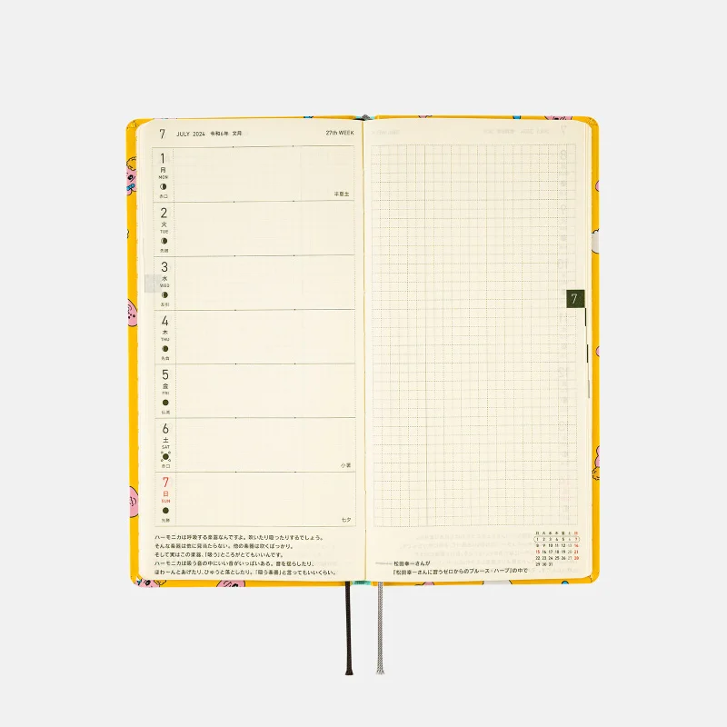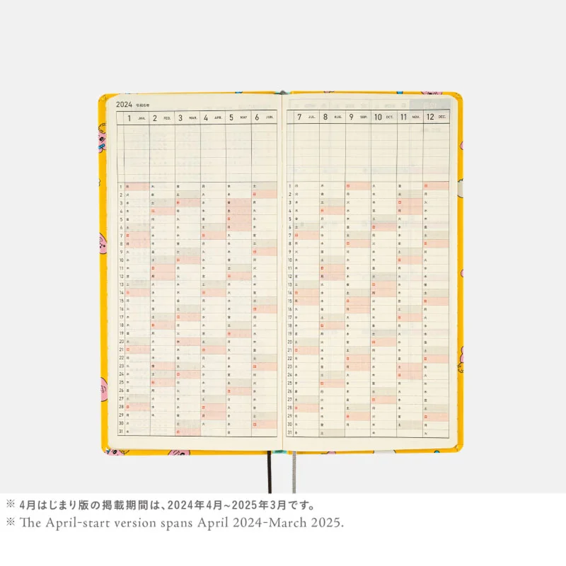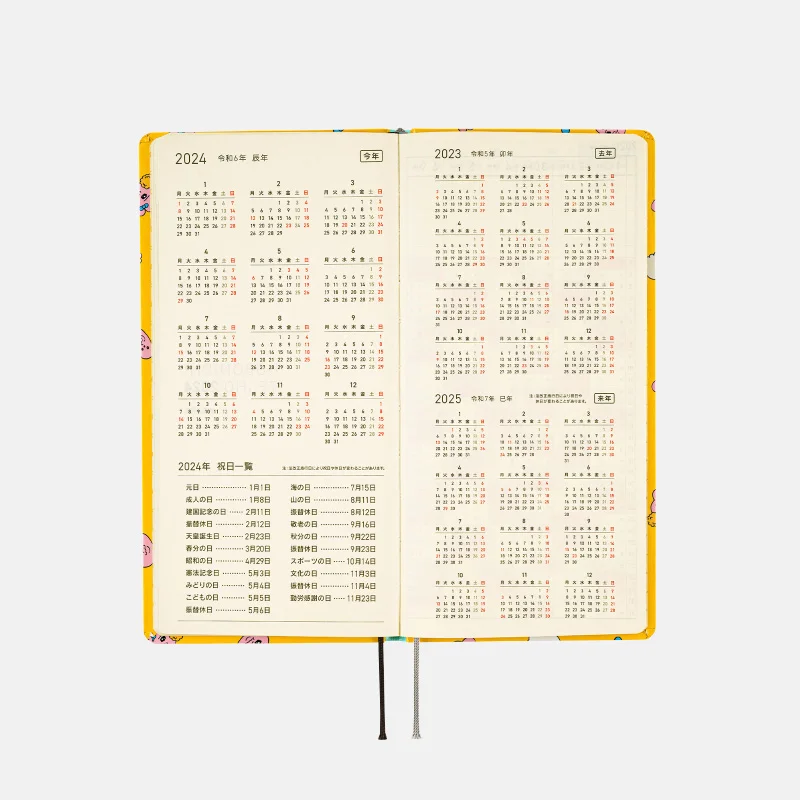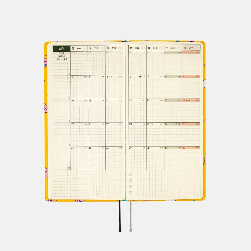 The bright yellow color of “Opanchu Usagi (Calendar)” makes it eye-catching even inside your bag. It is a Weeks book with an all-over pattern of illustrations related to Japanese events of the year, such as Setsubun demon masks, carp streamer decorations, teru-teru-bozu dolls, and many different Opanchu Usagi. The images for events are exclusive to Hobonichi Techo.