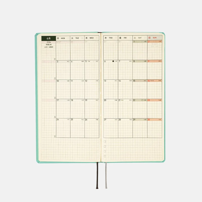 | Paper Type / Binding | Thin, light Tomoe River S paper resistant to bleeding and designed for planners / Stitch-binding |