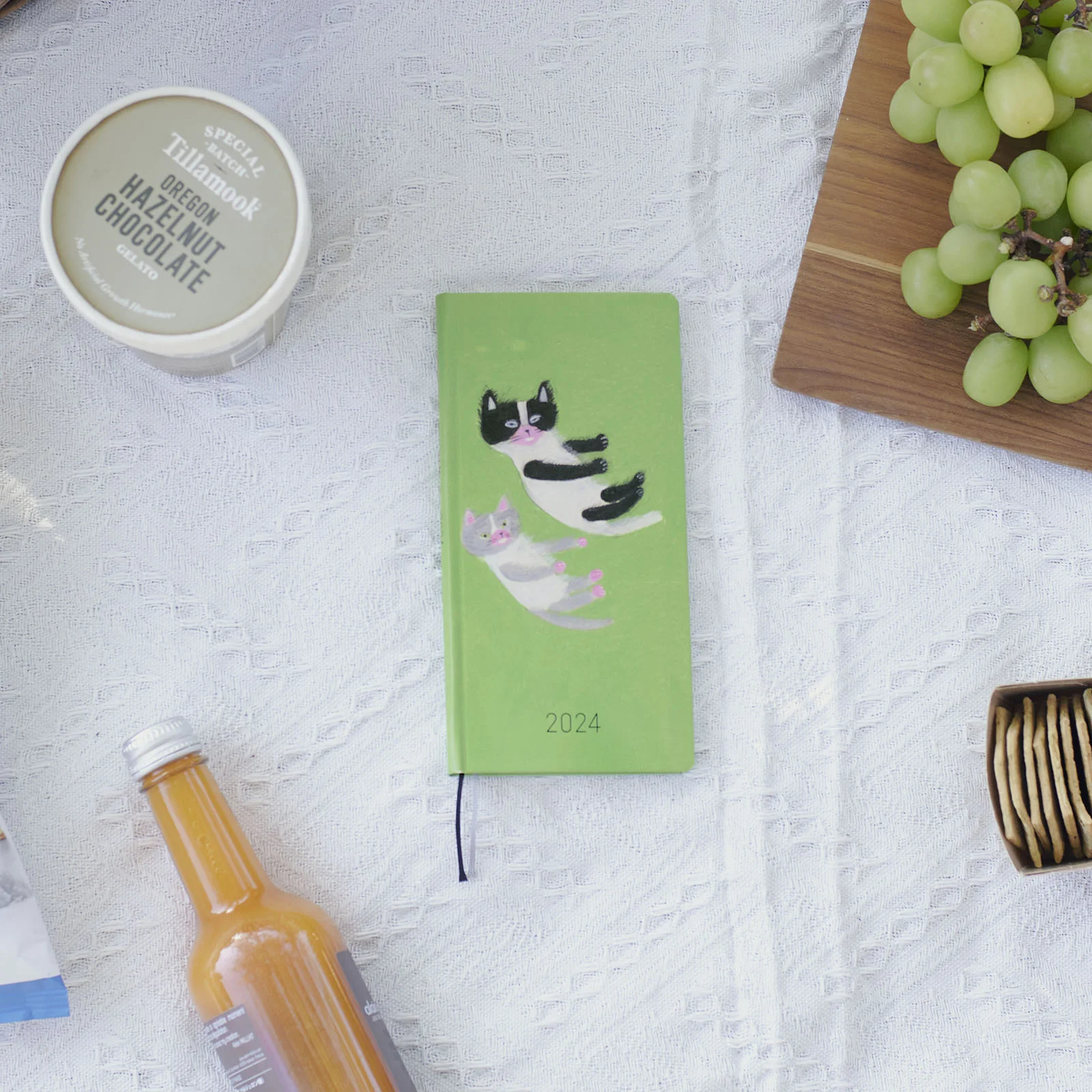 The front cover and book spine are foil-printed with the year 2024 in black, for a nice and simple look.