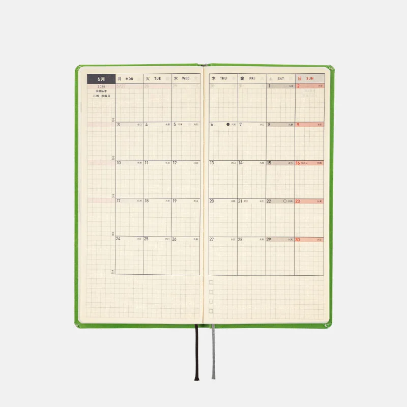 | Paper Type / Binding | Thin, light Tomoe River S paper resistant to bleeding and designed for planners / Stitch-binding |