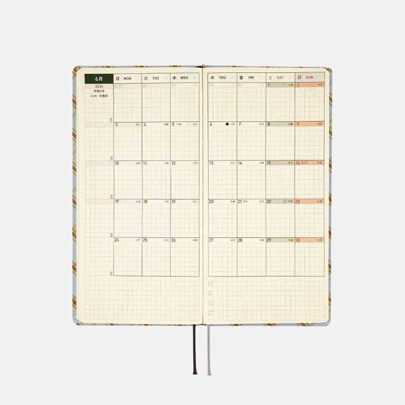 | Paper Type / Binding | Thin, light Tomoe River S paper resistant to bleeding and designed for planners / Stitch-binding |