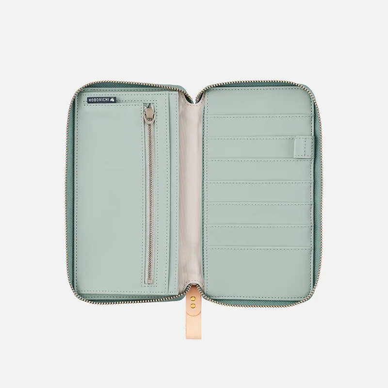 The cover interior is a smoky mint green.