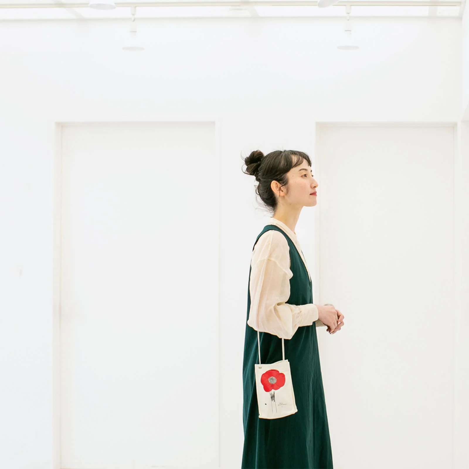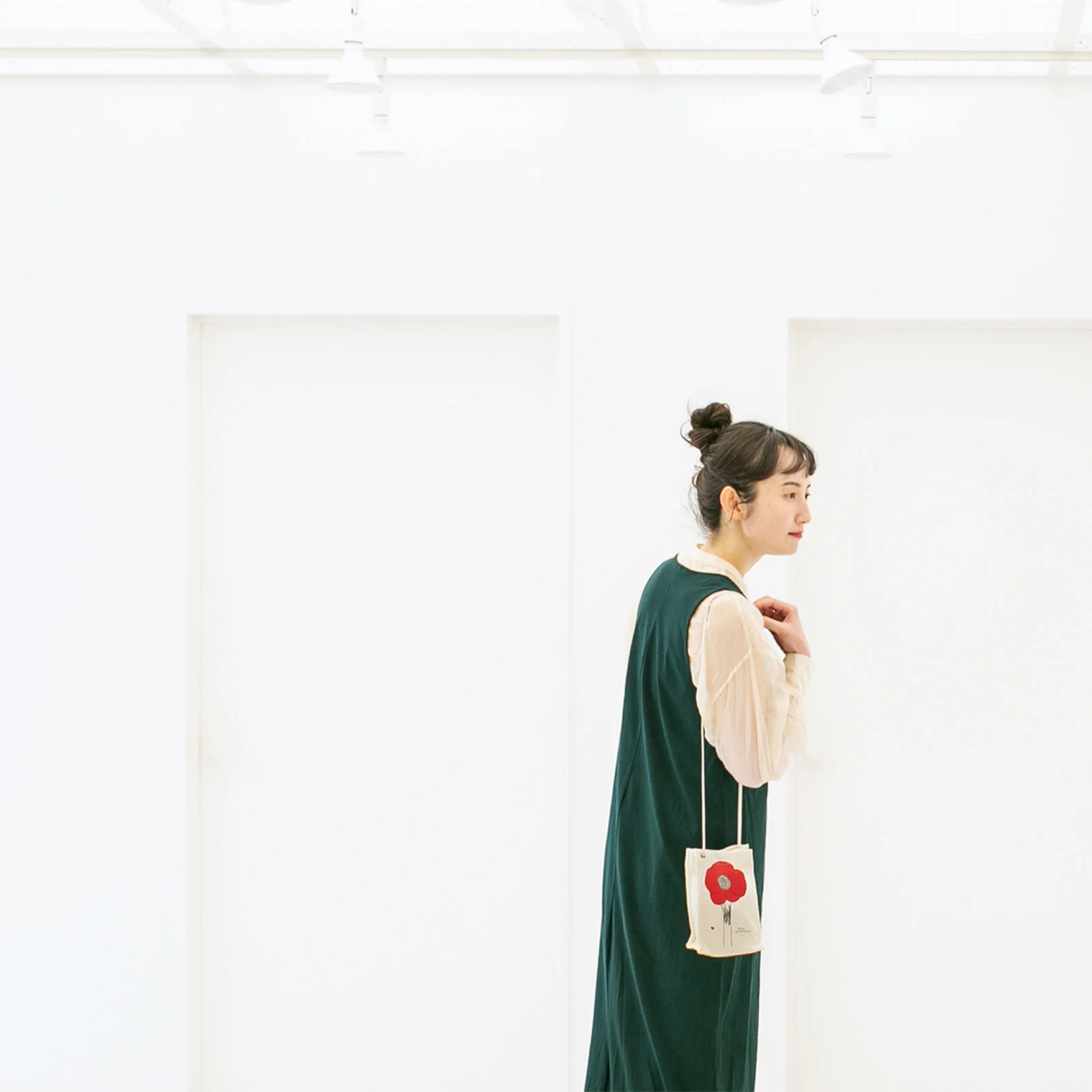 The outer material is made with a white material reminiscent of a brand new canvas, and the flowers are drawn with strong, black lineart. The flower petals are an eye-catching shade of vivid red. Gazing at these red flowers bursting with energy can put you in a bright and cheerful mood every day.