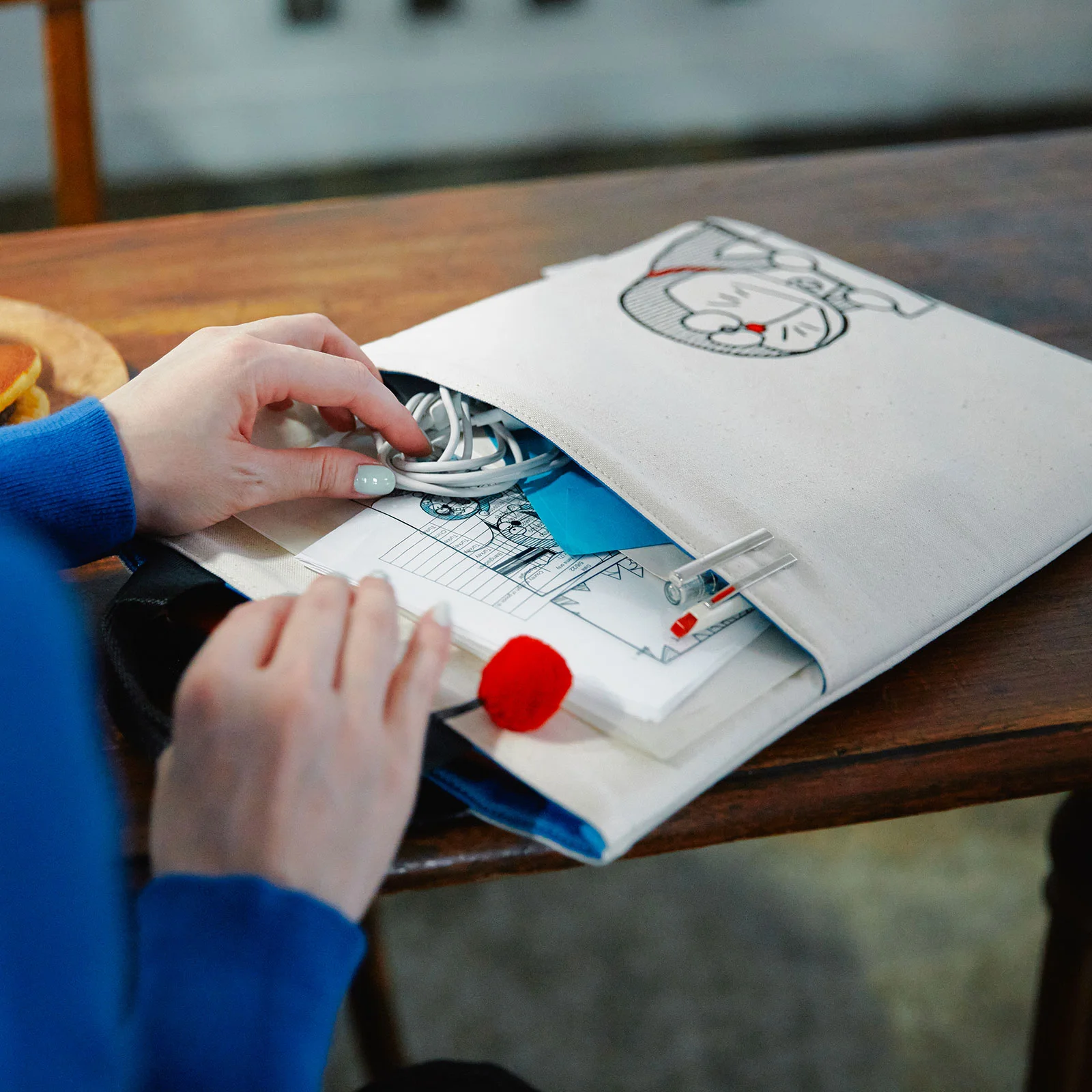 This slim and lightweight tote bag can store a 13-inch laptop or A4 size documents so you can store it all together and comfortably carry it around anytime, anywhere you go. The fabric gently wraps the contents like a sandwich, hence the name Panini.