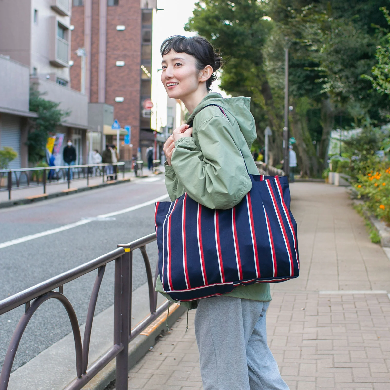 The Anytime Tote is made with a sturdier material than standard reusable shopping bags, so you can use it every day. It’s also nice and light despite how big it is, so it can hold a lot while still being easy to hold.