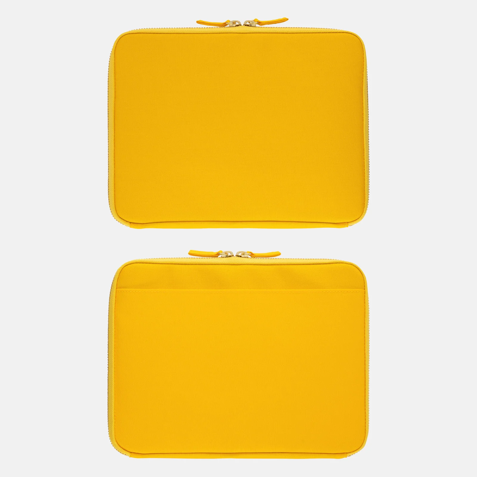 Turn your pouch into a convenient gadget case by storing your tablet, cords, chargers, and other accessories for your electronics. This provides an added bonus of cleaning up the clutter from your bag. (Pictured: Yellow)