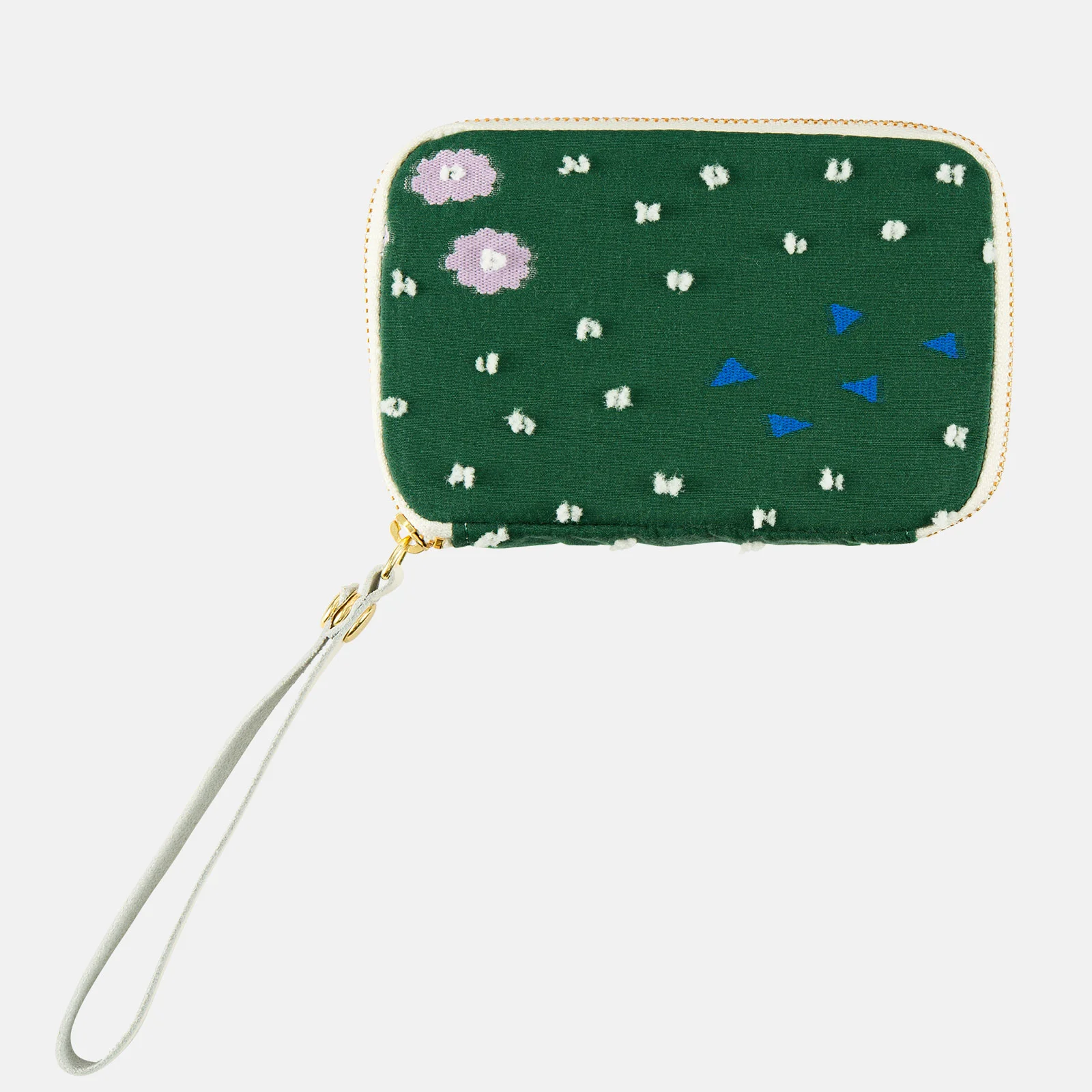 Makino Collection: Desk Garden is a soft, silky green fabric dotted with pink flowers. What makes it unique are the soft white spots that are sewn into the fabric. These white puff-balls are not sewn into the textile afterwards — they’re included at the time of manufacturing, so as long as you do not pull at the fabric too strongly, these spots will not fall off of the cover. The color of the interior is white.