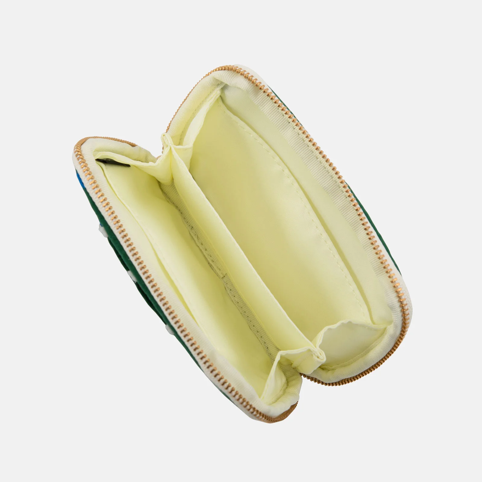 The pouch opens accordian-style and is the perfect size for storing cards. The interior is split into four zones to allow for detailed organization. While compact, the pouch also has enough storage space to hold items with volume, such as lip balm and earbuds.