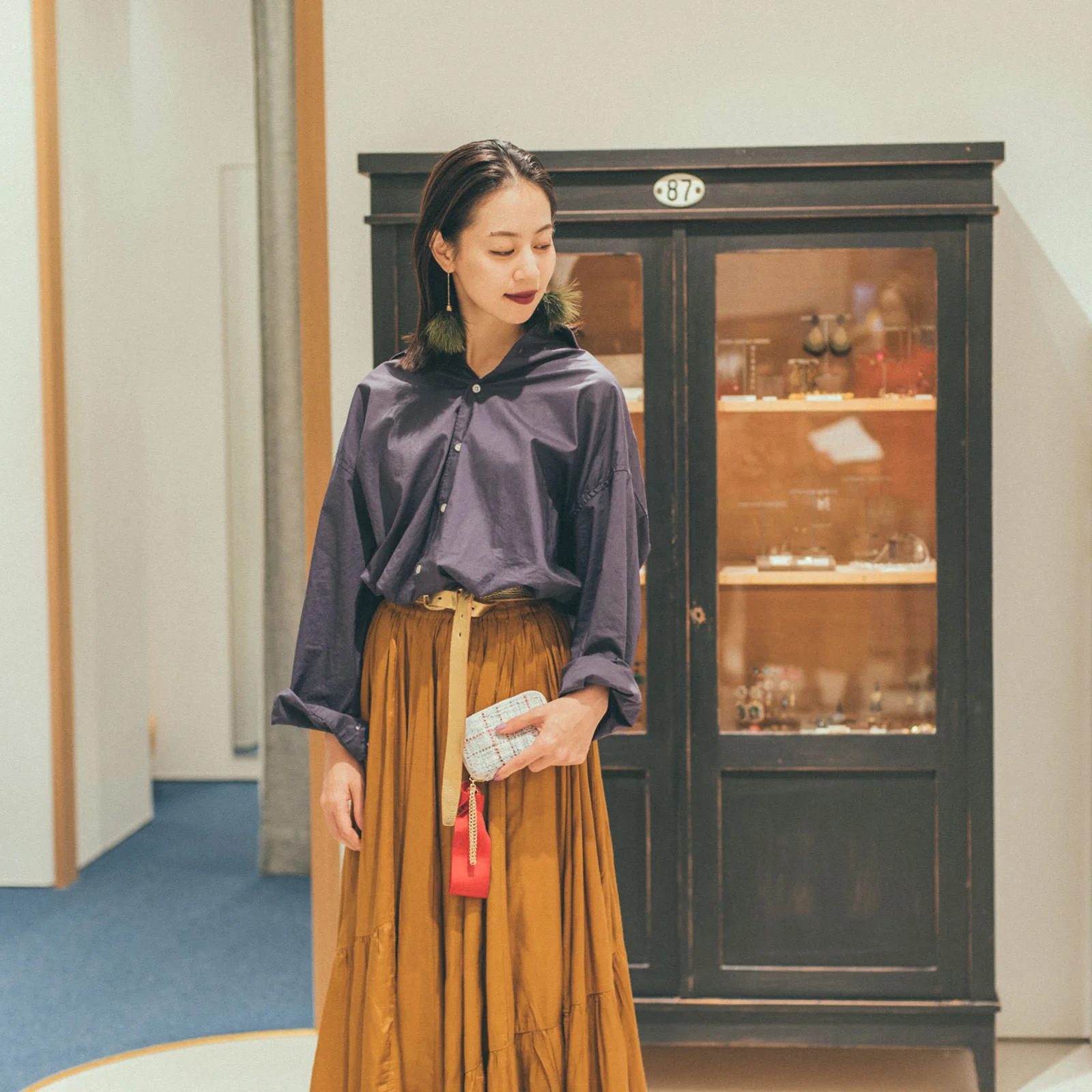 Iwate Home Spun: Lamé Tweed has a white base overlaid with cool-colored thread and accented with two colors of lamé yarn. The name Home Spun refers to the tweed fabric’s hand-spun and hand-woven feel. Starting with the dyeing of the yarn, the textile is made entirely in a small factory in Hanamaki City, Iwate Prefecture.