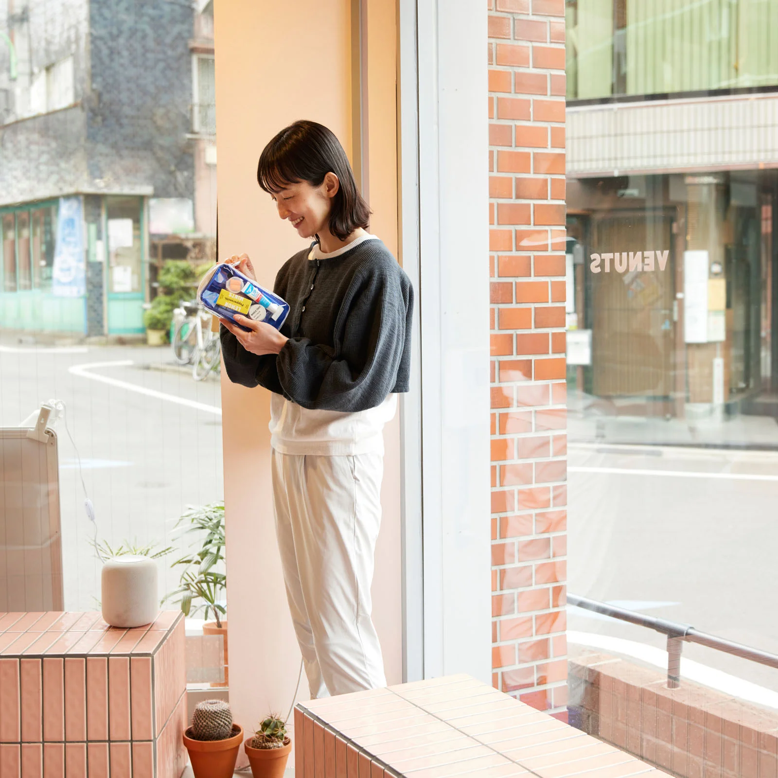 The pouch can hold many items, but its slim size and compact shape make it easy to fit into a purse or bag.