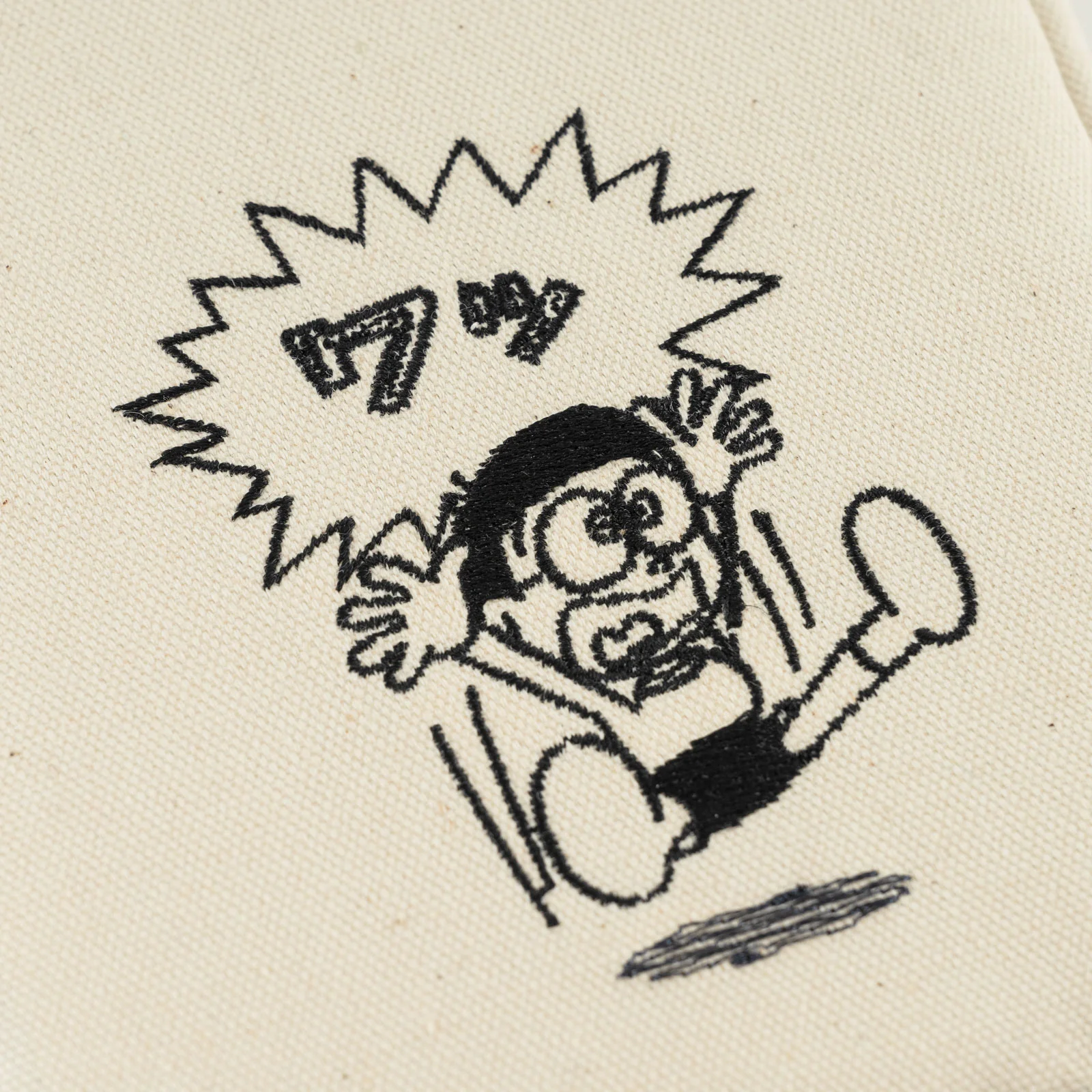 Doraemon rides on a time machine from the 22nd century and saves Nobita with various secret tools pulled out from his “4D pocket.” This pouch depicts the scene in the manga where Doraemon appears for the very first time using embroidery. The color scheme uses black and white, creating a chic look. This scene of Doraemon coming out of a desk “drawer” and Nobita jumping up in surprise is perfect for the “Drawer” Pouch.