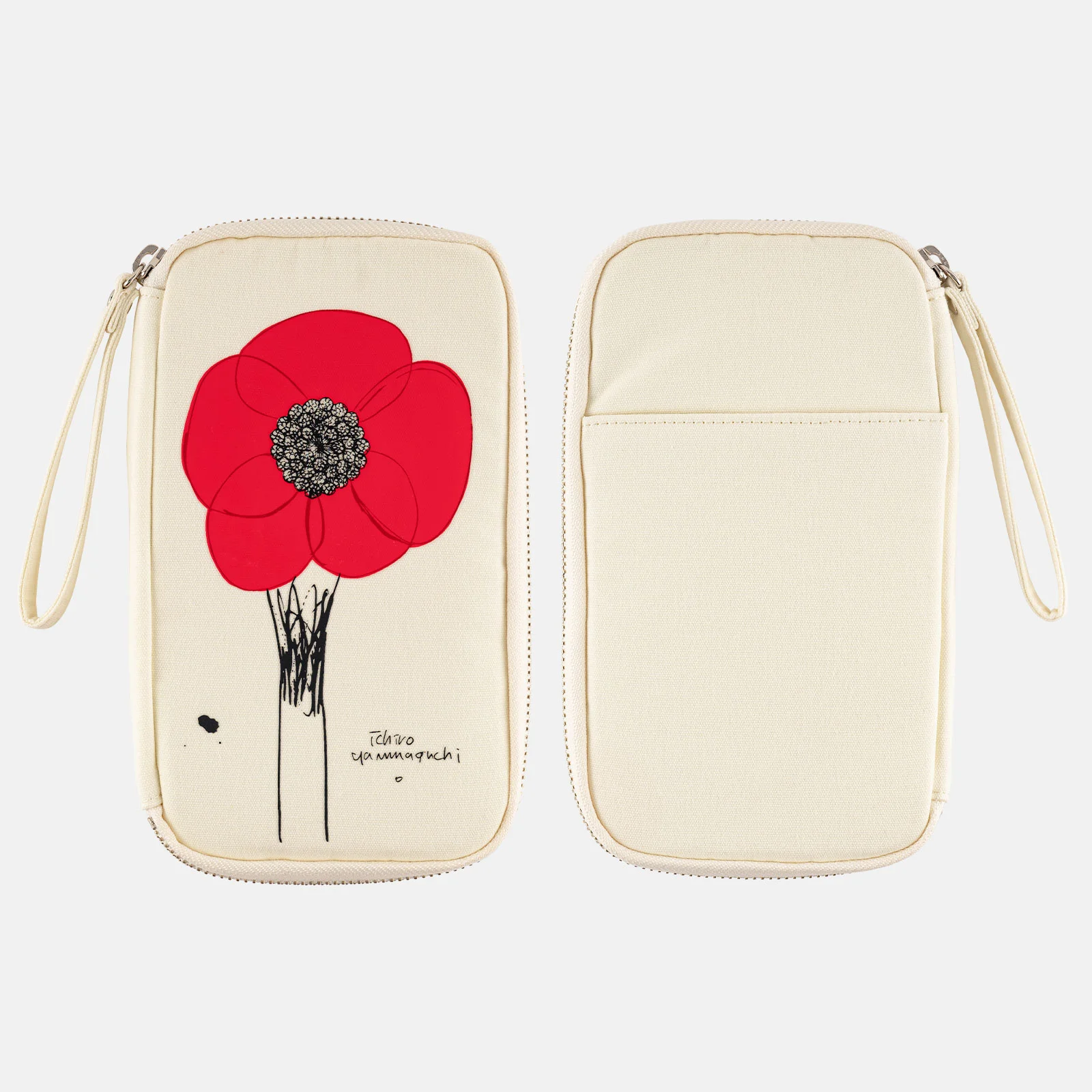Painter Ichiro Yamaguchi created this piece called “Hana/Aka,” which is based on the series of designs called “Hanataba” created for the Hobonichi Techo 2023 lineup. Each artwork was individually created for each cover size, and now Yamaguchi has painted more red flowers for the Drawer Pouch.