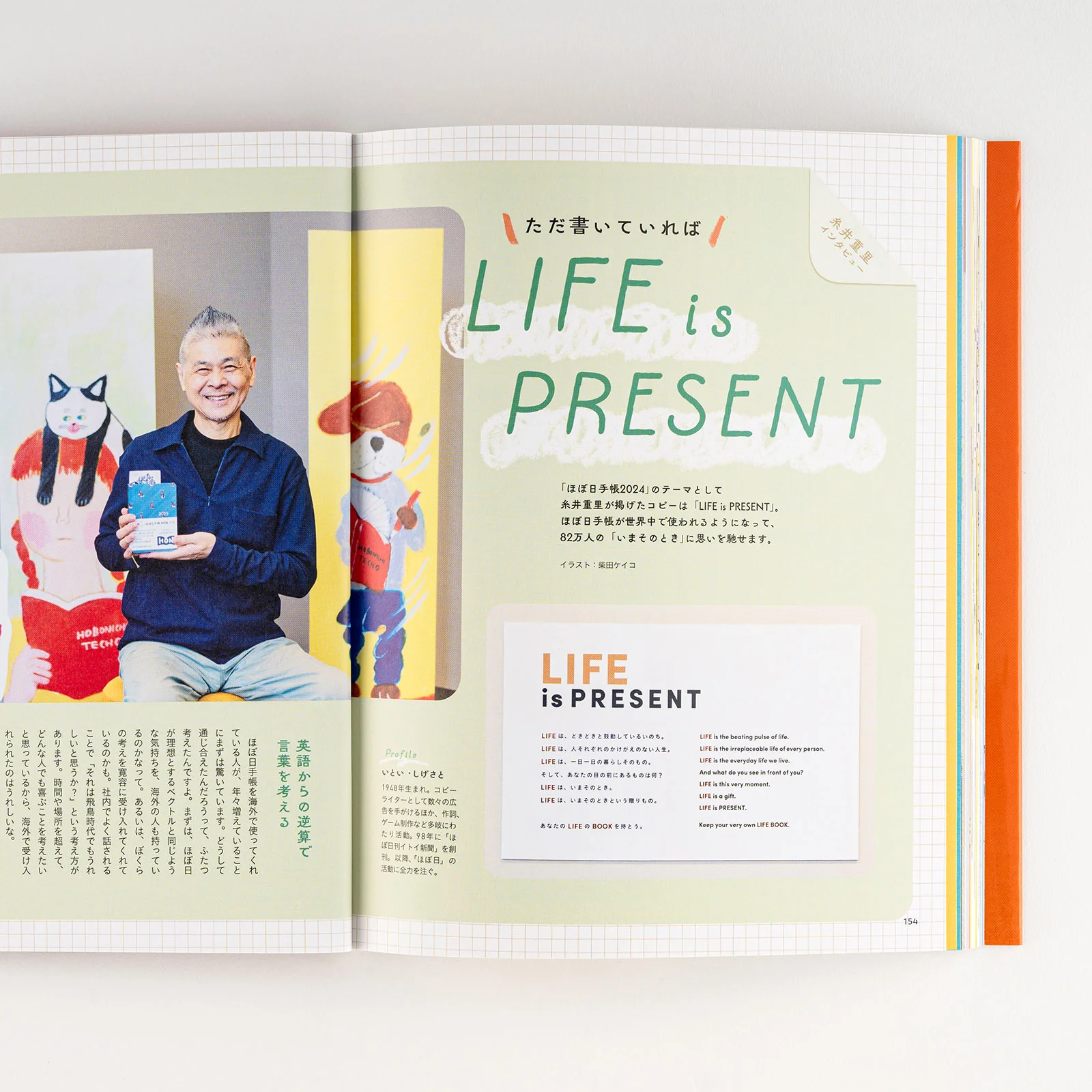 There are many other features we’ve included, such as an interview with Shigesato Itoi about his LIFE is PRESENT slogan and a visit to Sanzen Paper to tour the factory that makes Tomoe River S paper. We’ve compared unique accessories with functional ones, and the HON is head-to-head with the techo book and cover sets! We’ve also selected some of the comments collected in our Hobonichi Techo surveys. There’s a lot to read, learn, and immerse yourself in!