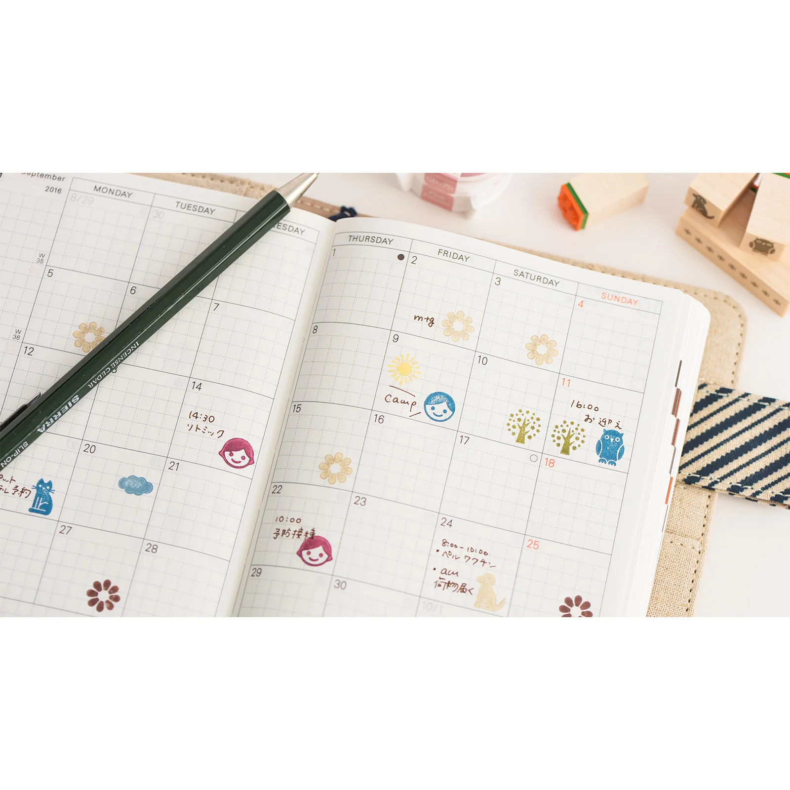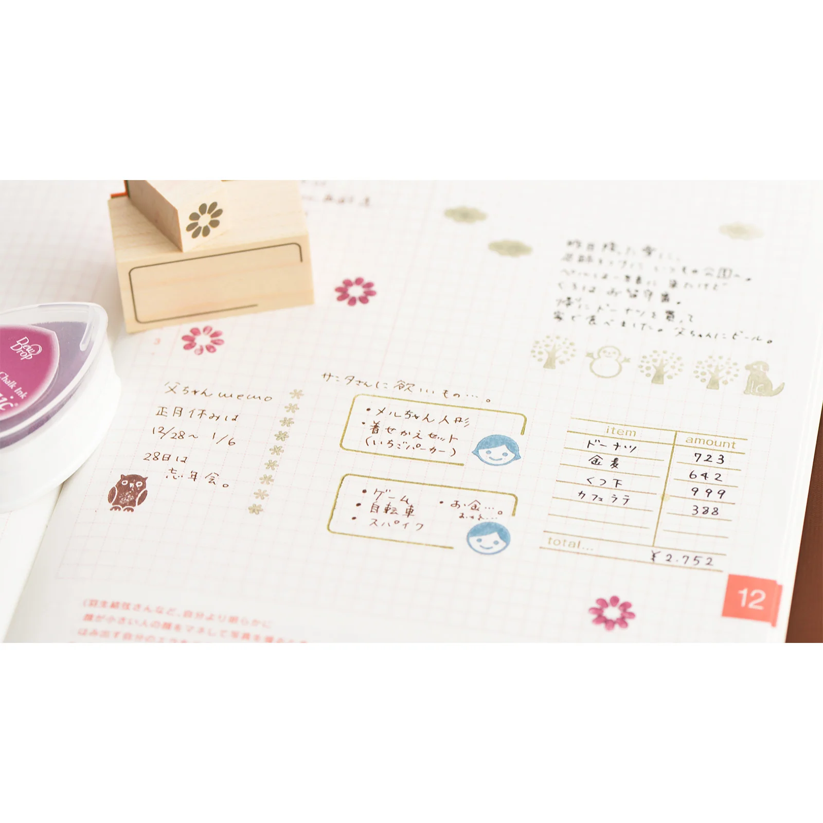 This stamp set is an original product by Torinoha, a stamp maker that aims to make planners more fun. The stamps are approximately 1 cm squares that come in a set, including frames and other cute yet practical designs that can be filled in. Some stamps can even be stamped inside of one of the frame stamps for double the fun.