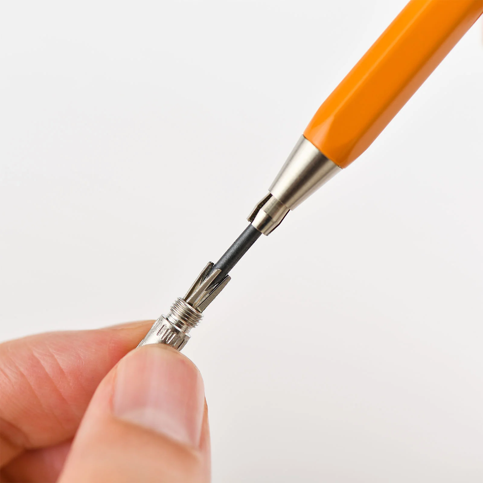 Koh-I-NoorMechanical Clutch Leadholder 2.0 mmThis leadholder from Koh-I-Noor, a venerable Czech stationery maker, comes with a 2.0 mm graphite lead. The mustard-hued metallic body fits snugly in your hand thanks to its hexagonal shape. The Koh-I-Noor logo and the word “versatle,” meaning versatile in Czech, are printed in gold on the surface. As indicated by the print, this writing tool is useful for sketching, penciling rough designs, or simply writing letters, making it one of the most long-running, beloved items among over 4,000 Koh-I-Noor products.