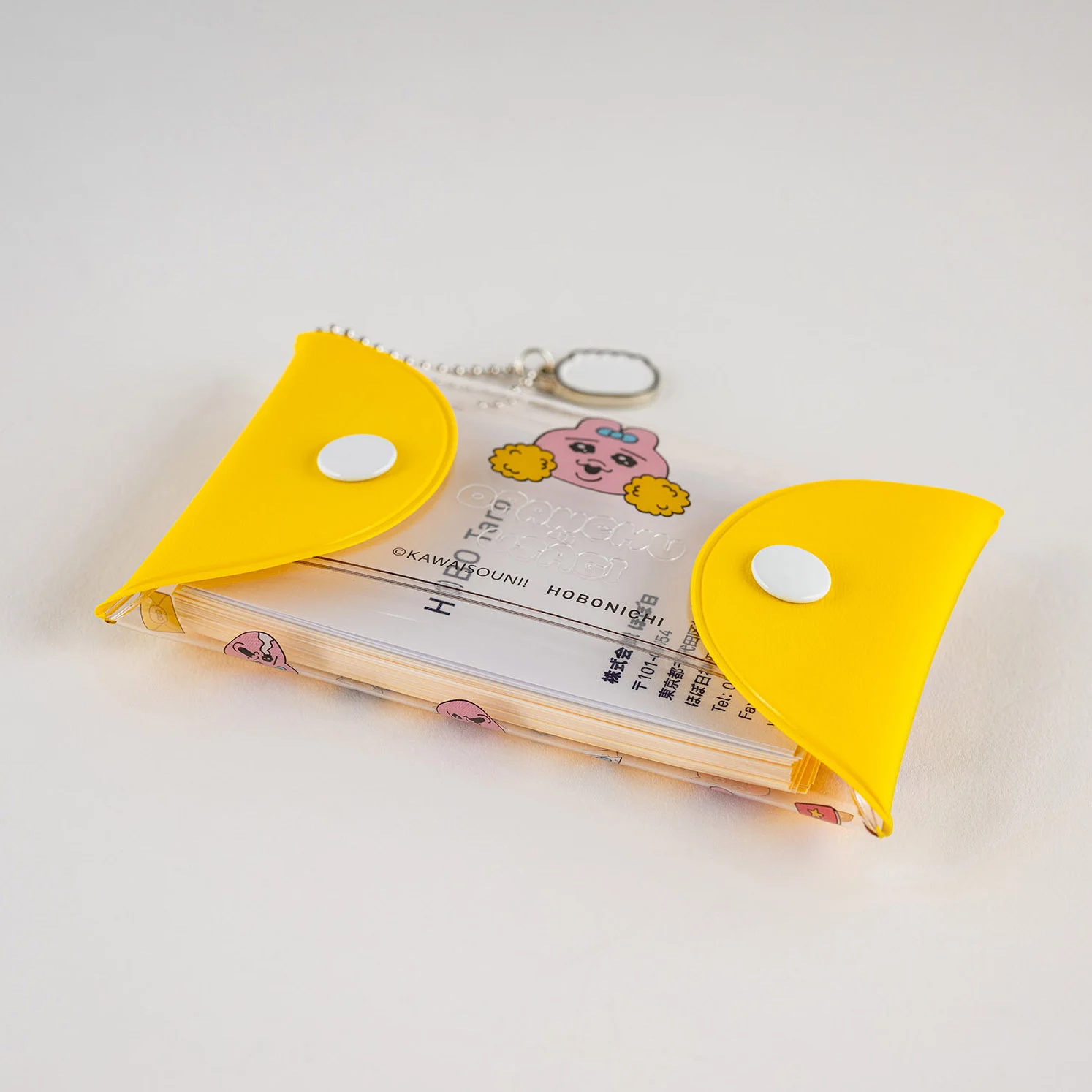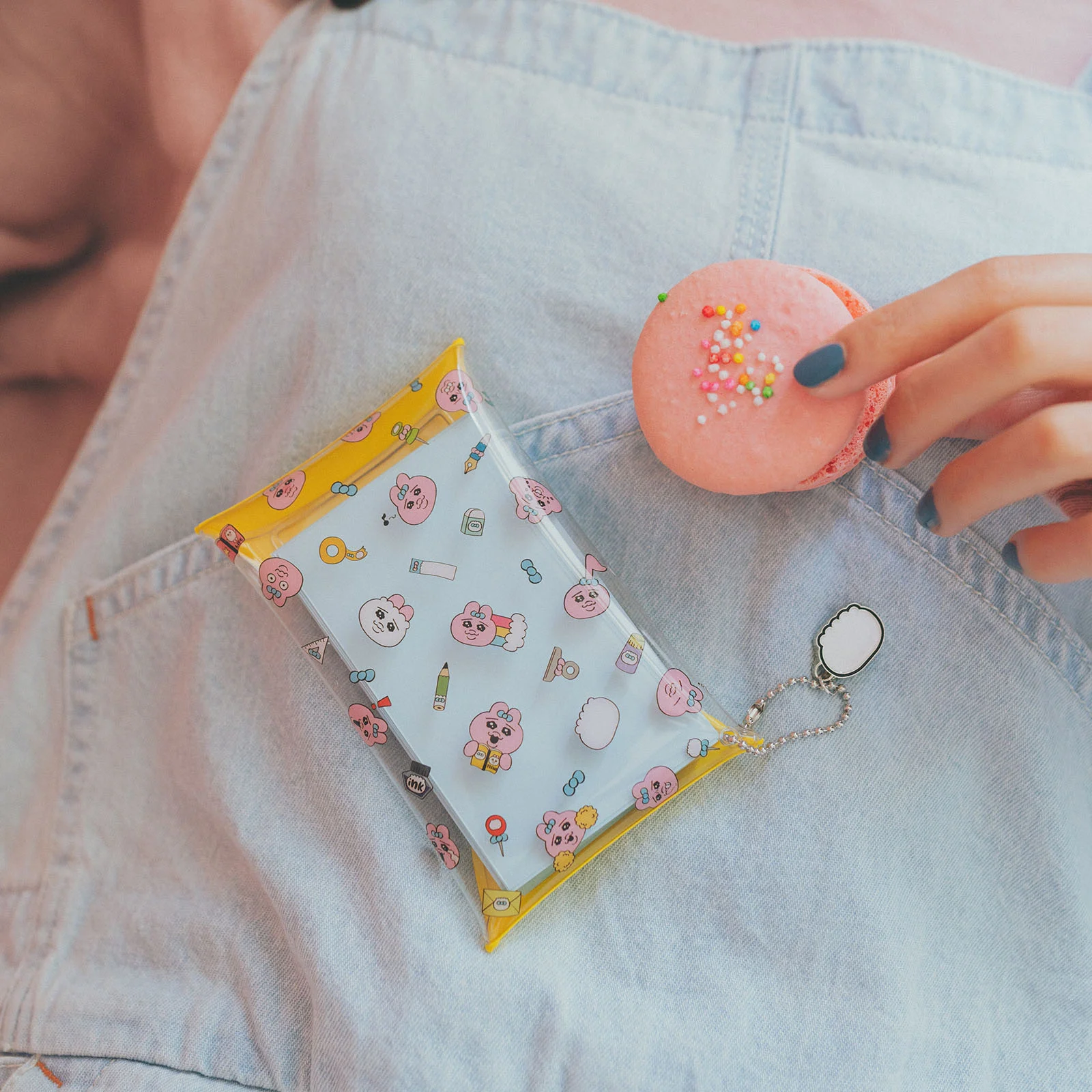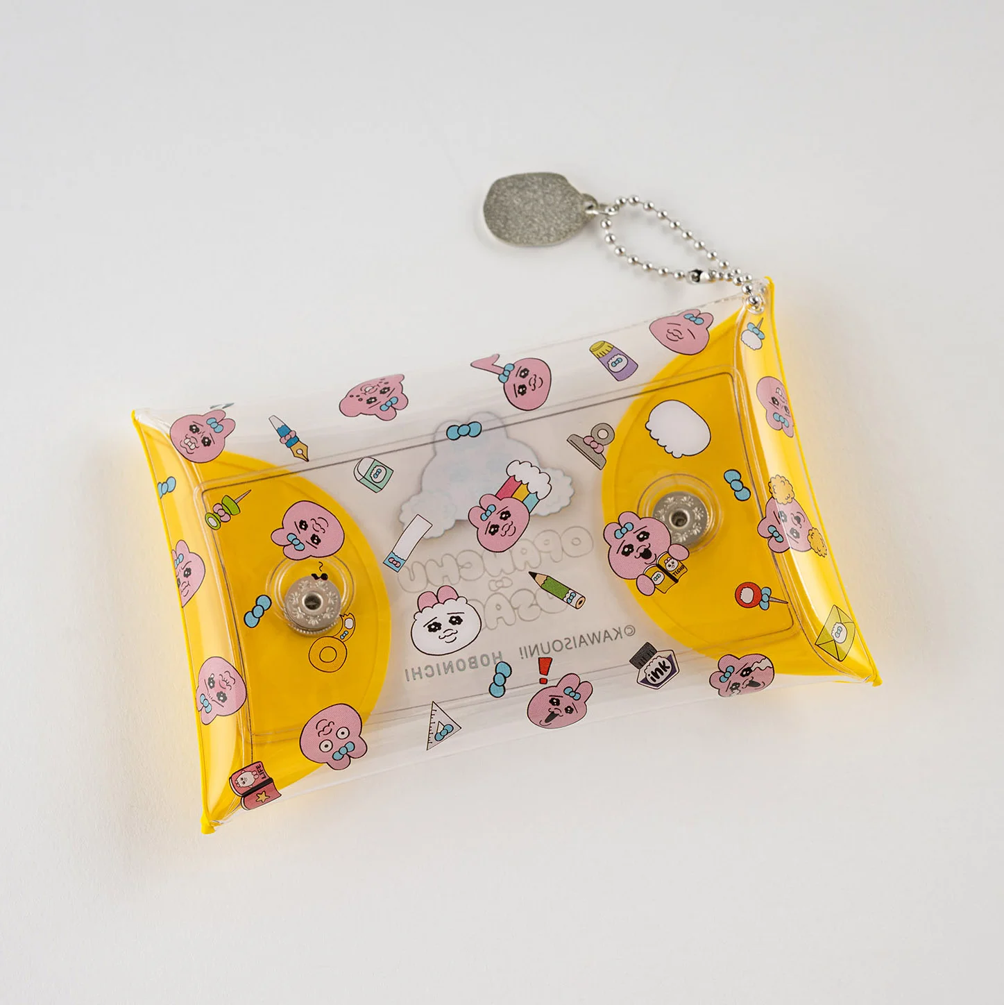 This is a card case with the design of “Opanchu Usagi,” a popular character created by illustrator KAWAISOUNI! It is a transparent item that allows you to see what is inside. In the middle is an illustration of Opanchu Usagi with pom-poms, and the “Opanchu Usagi” logo is foil-pressed in silver. The design on the back is the same as “Opanchu Usagi (Stationery),” with Opanchu Usagi in various styles and illustrations of stationery, such as pencils and erasers.