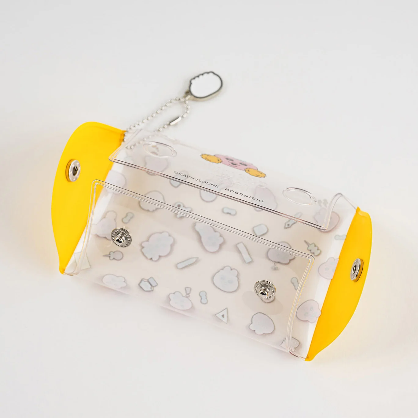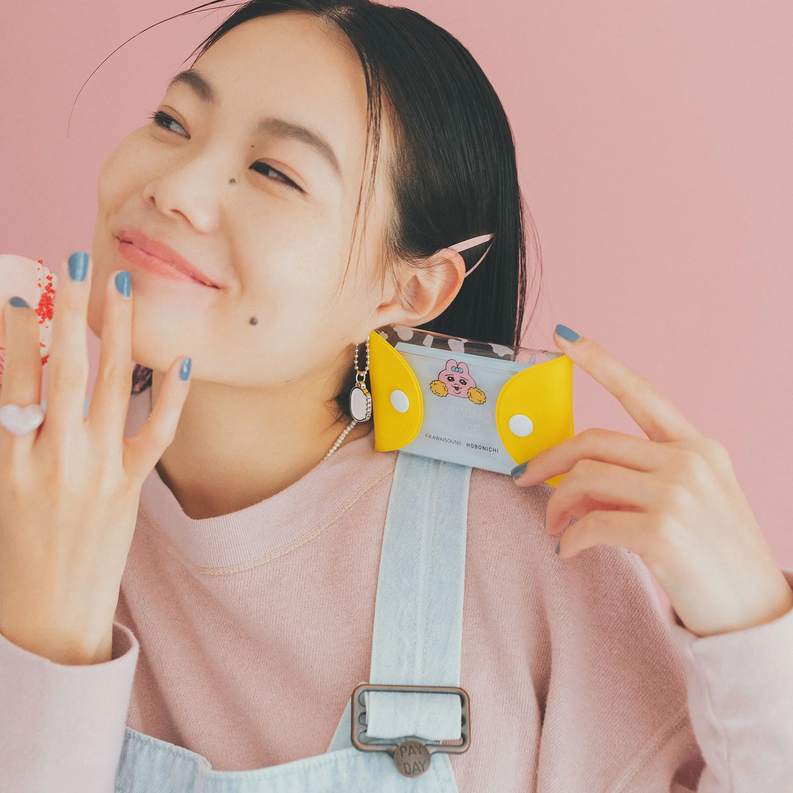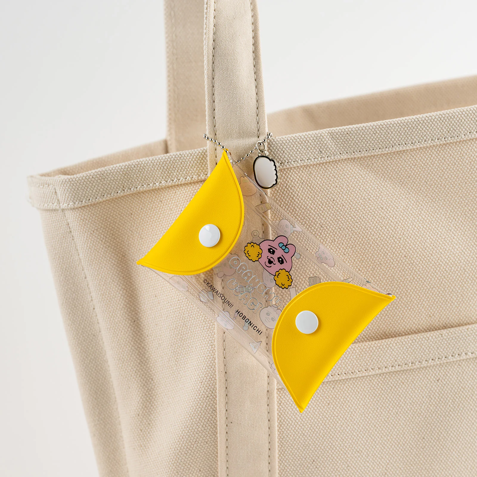 This is a card case with the design of “Opanchu Usagi,” a popular character created by illustrator KAWAISOUNI! It is a transparent item that allows you to see what is inside. In the middle is an illustration of Opanchu Usagi with pom-poms, and the “Opanchu Usagi” logo is foil-pressed in silver. The design on the back is the same as “Opanchu Usagi (Stationery),” with Opanchu Usagi in various styles and illustrations of stationery, such as pencils and erasers.