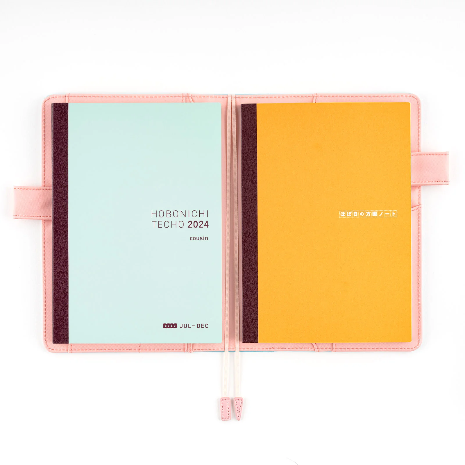 The notebook size is the same as the A5 Cousin, which makes it compatible with any of the Cousin’s Hobonichi Techo covers. The cover is great for storing items like pens or sticky notes, and provides a very convenient user experience.