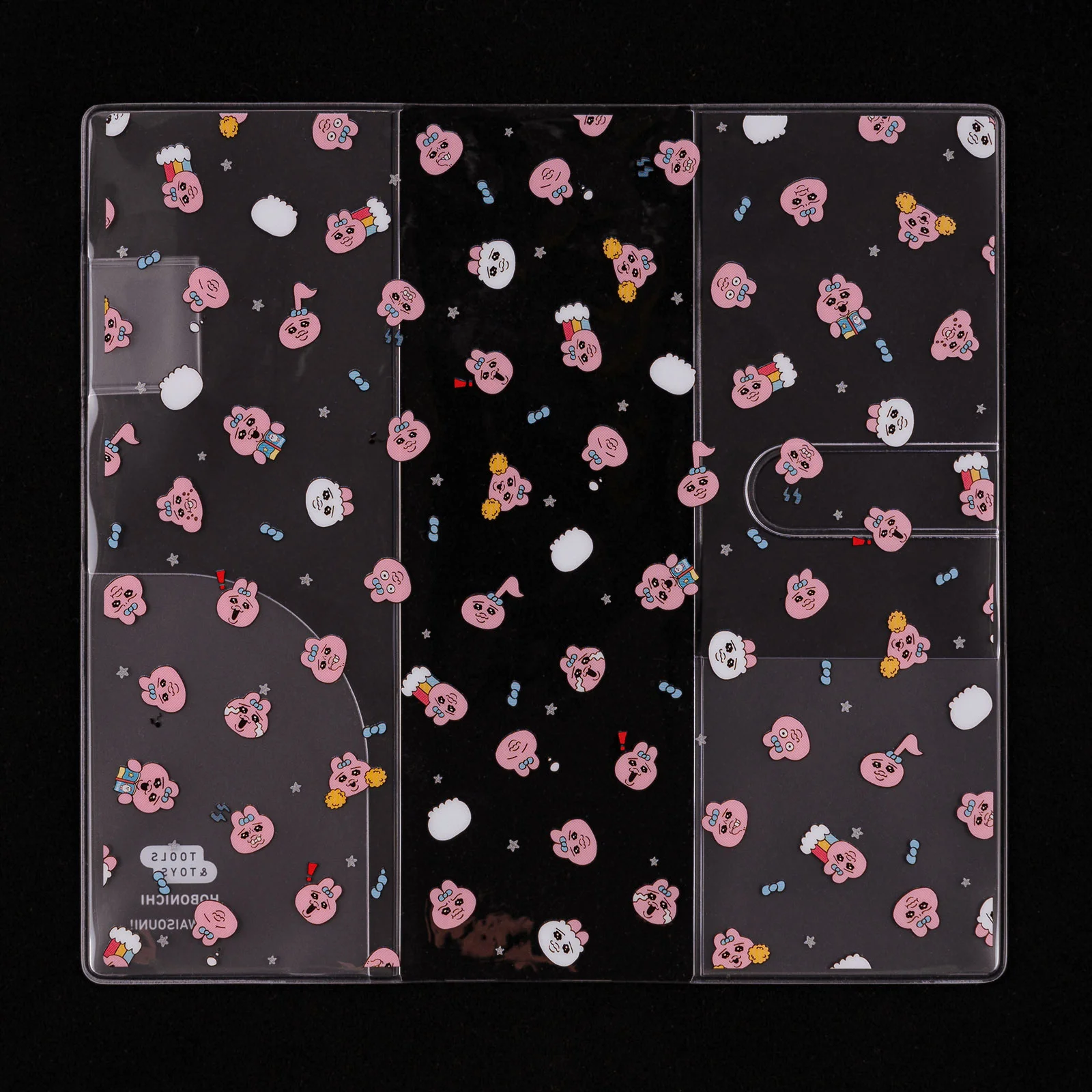The various expressions of Opanchu Usagi printed all over this Clear Cover will give you joy just to take a look at them one by one. It would also be fun to find the Opanchu Usagi with a Hobonichi Techo in its hand!