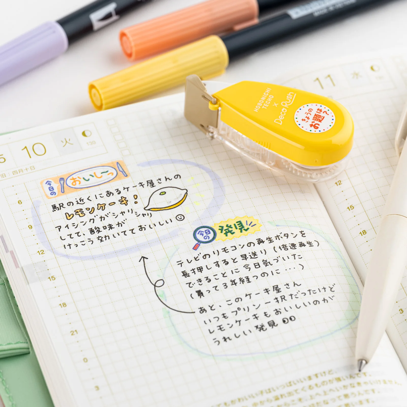 This decorative tape makes it simple and easy to spruce up your pages. Just like corrective tape, all you need to do is pull the tip of the dispenser across the surface of the paper and it will automatically stick. You can use it to accent where you’ve written plans for the day, or draw a line with it to make a section of the page stand out.