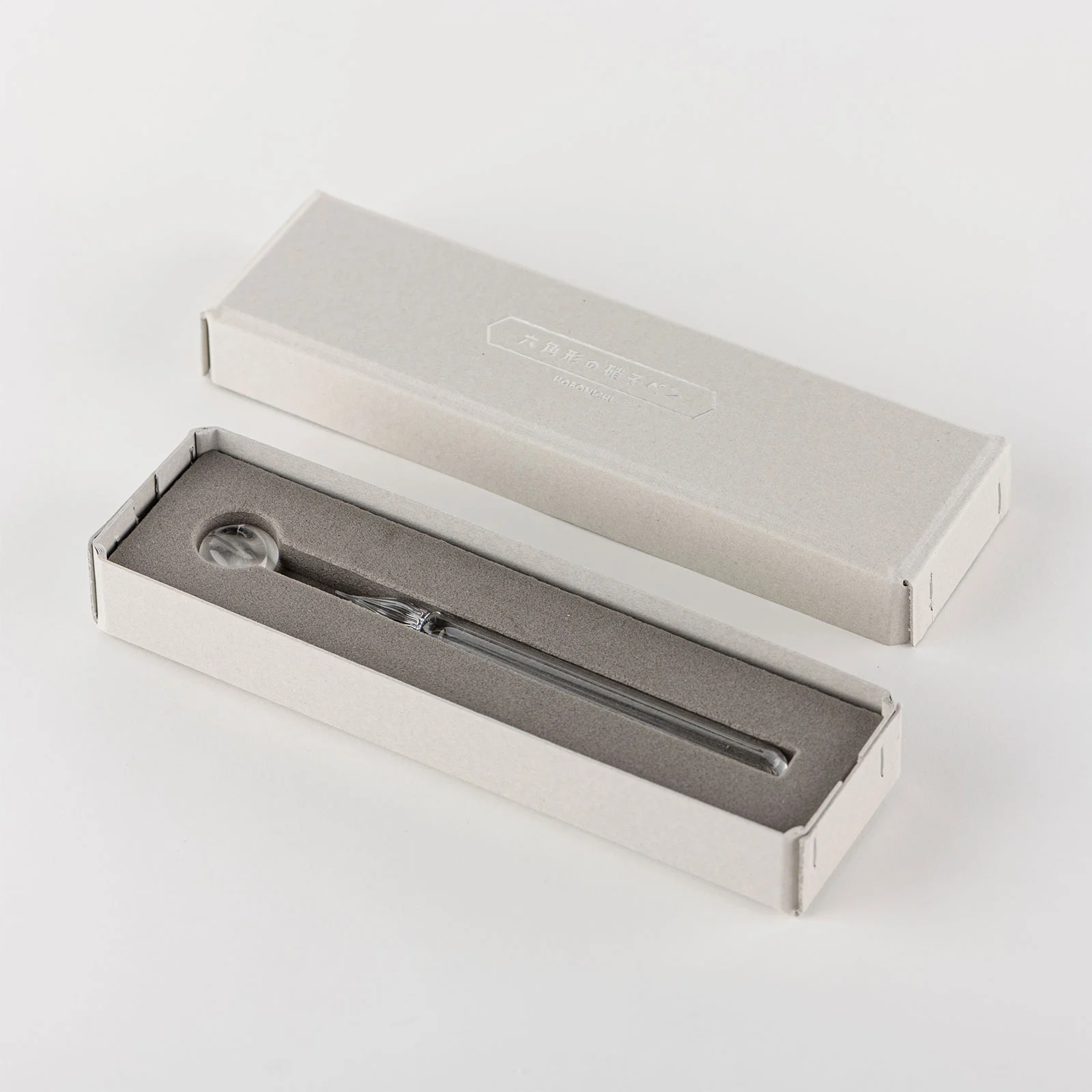 The glass pen comes packaged in its original Hobonichi packaging that contains a protective sponge insert. We recommend storing the pen in it when not in use. It also makes a great gift box.