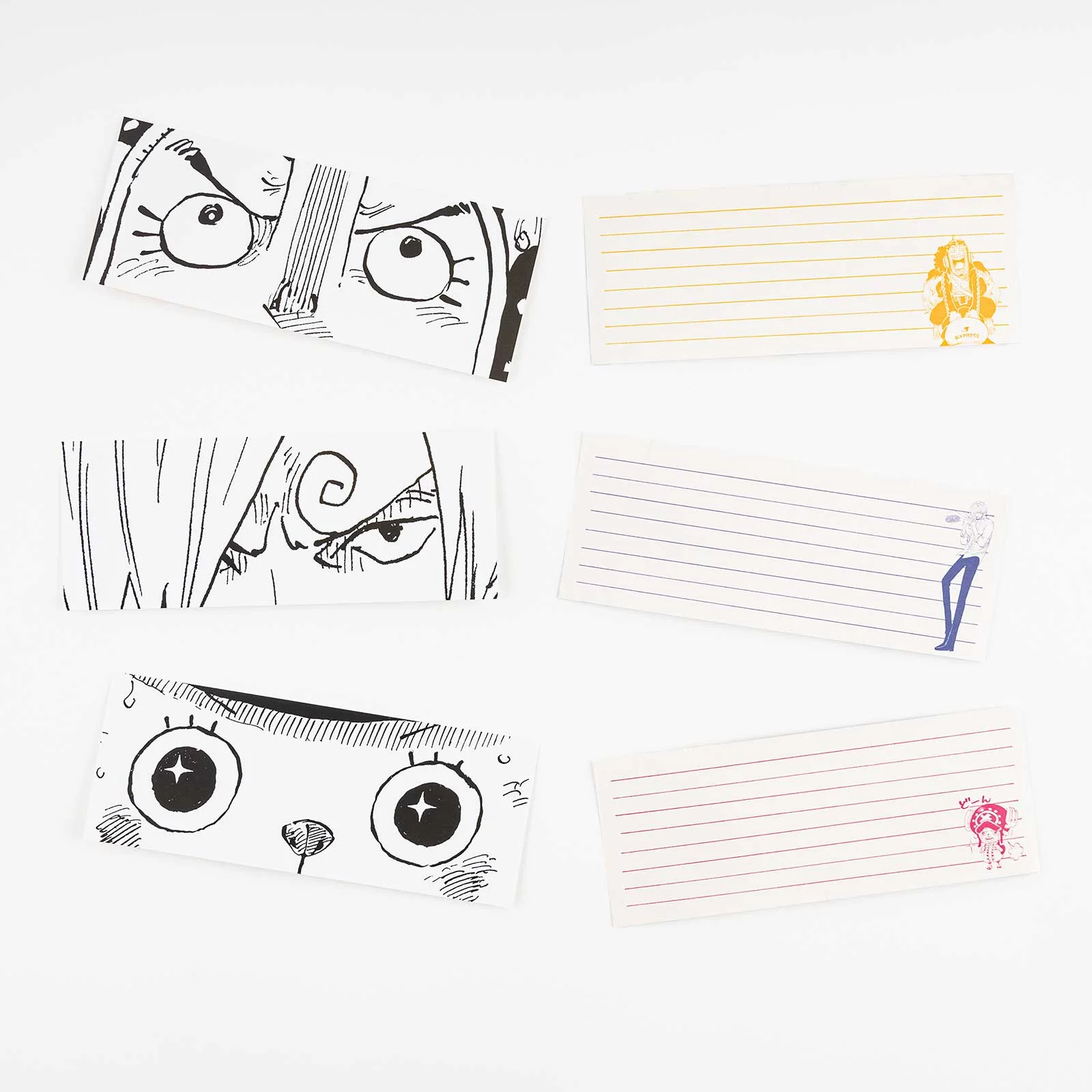 This bold letter set depicts the eyes of the main character Luffy and the rest of the ten Straw Hat Pirates on one half of each paper. You can play around with the paper by holding it up to your own face!