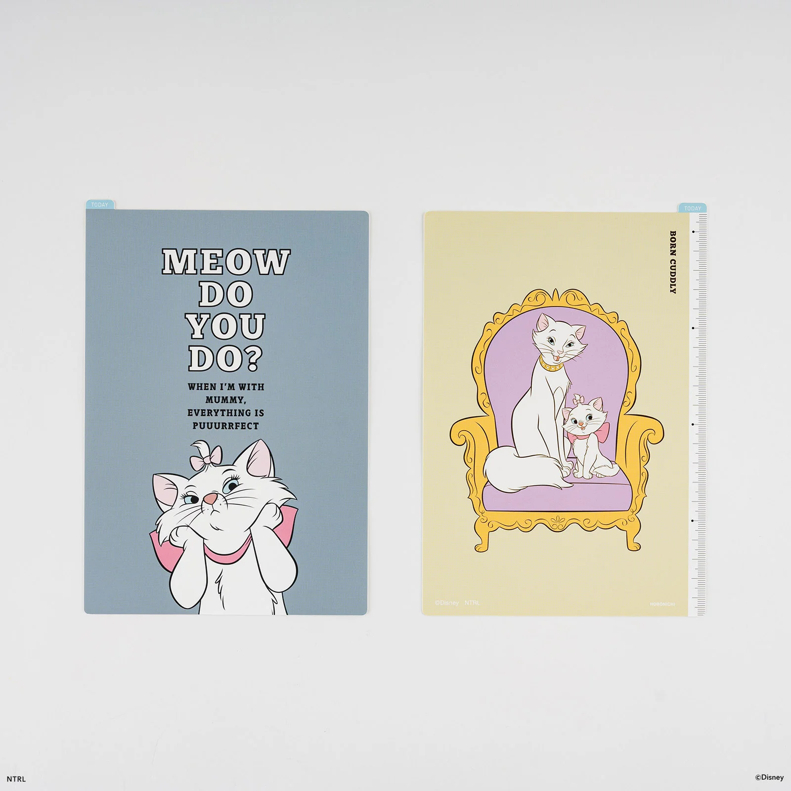 The Aristocats pencil boards come in three sizes: A6, A5, and for the Weeks. The designs feature the cute expressions and poses of Marie from the 1970 Disney Animation film The Aristocats. The back of each size pencil board has a different background color to give it a feel different from that of the front.