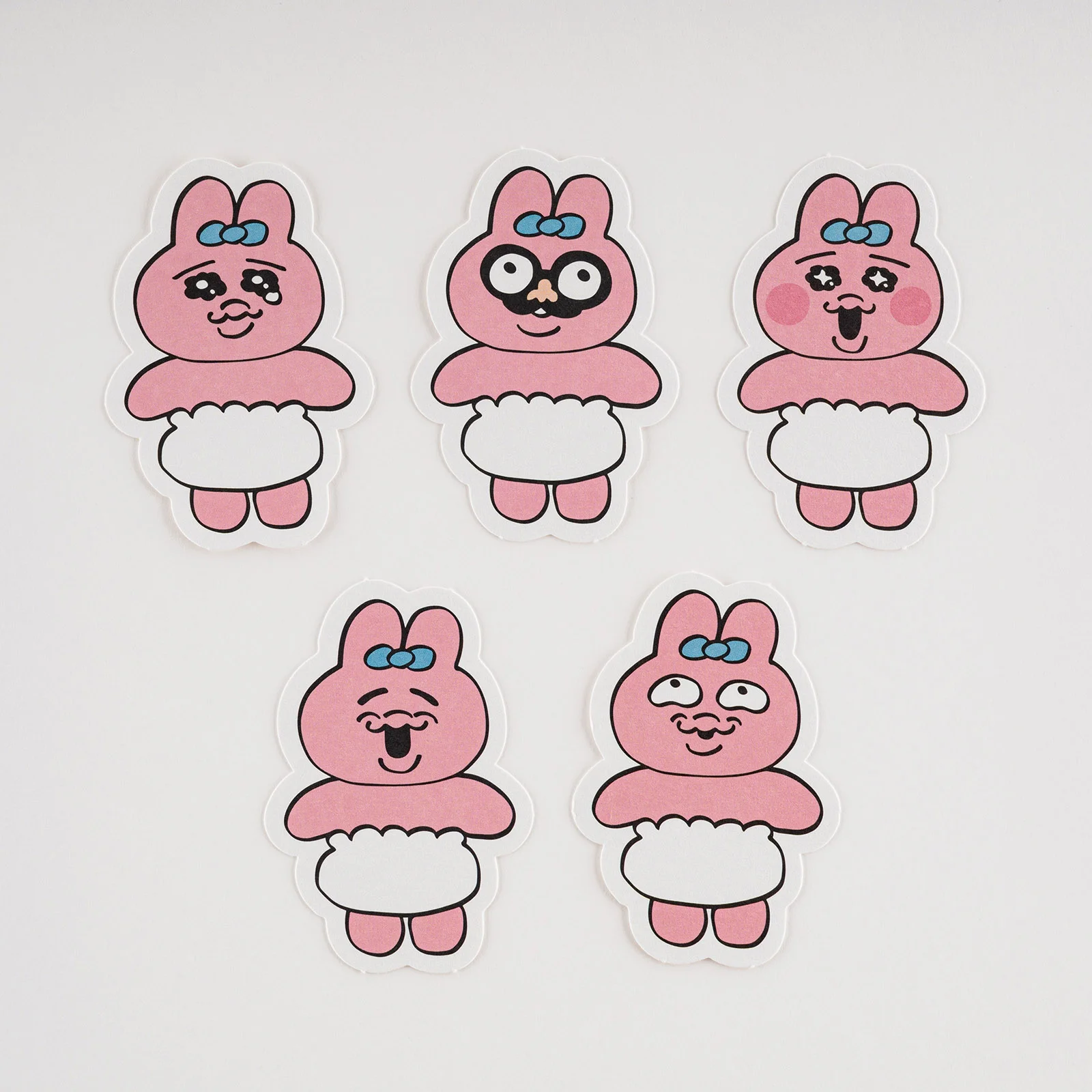 The mini cards come in one sheet each for the five designs with different expressions of Opanchu Usagi that make you chuckle, such as a smile with sparkling eyes or a face with nose glasses. There are five stickers and five envelopes each. Write a short message on the back, put it in the envelope, seal it with the sticker, and you will have a mini letter!