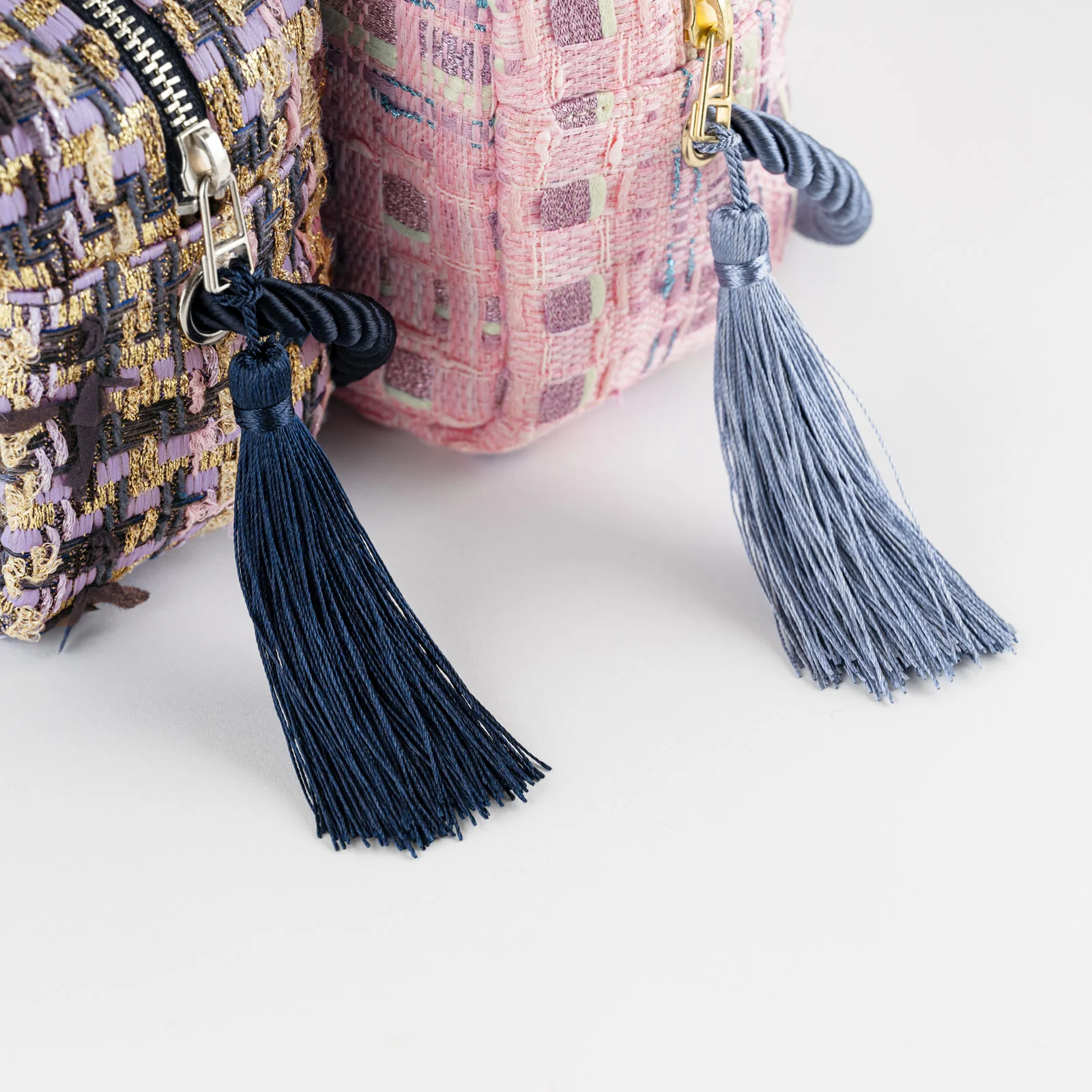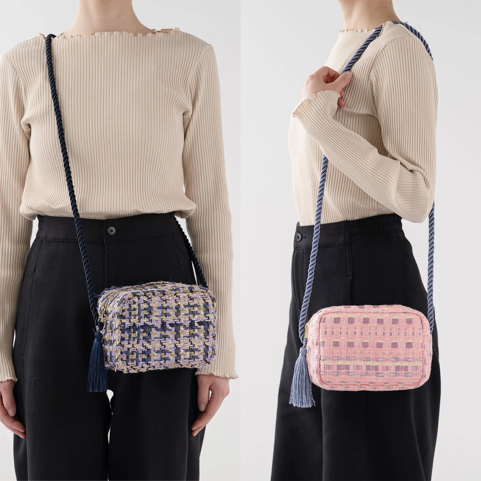 Using the same Malhia Kent textile as the techo covers Mauve Tweed and Peche Tweed, we made a pochette with a box-like shape.