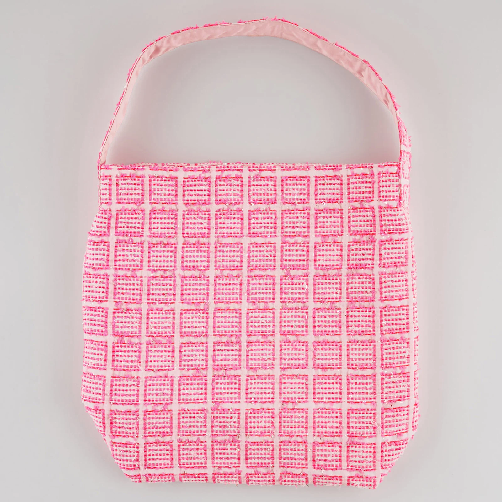 This shoulder bag uses fabric by the renowned fancy tweed maker Malhia Kent.