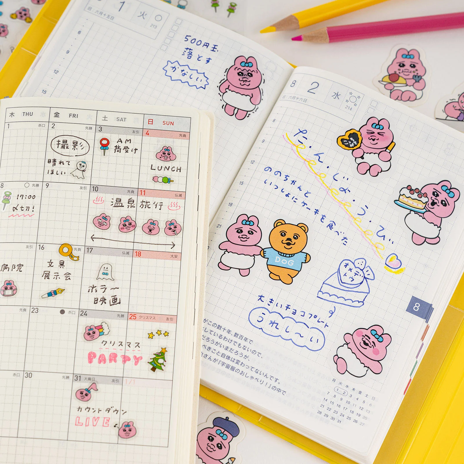 On the flake stickers, you will find Opanchu Usagi in all kinds of situations and emotions, such as going to an idol concert and carrying a cake. Paste it on your techo page when you write down events, making the page more lively.
