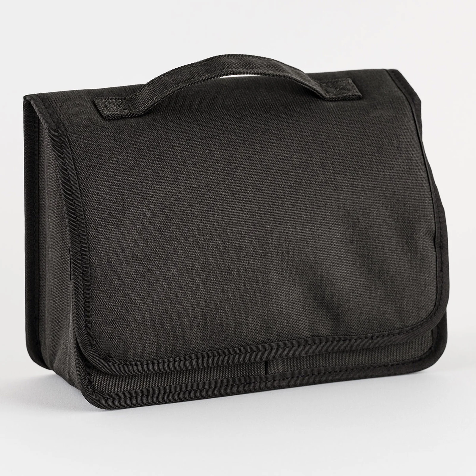 The lid opens wide, so even if you keep a lot of items in the pouch, you can still see what's inside. There's also a handle that makes it convenient for carrying around.
