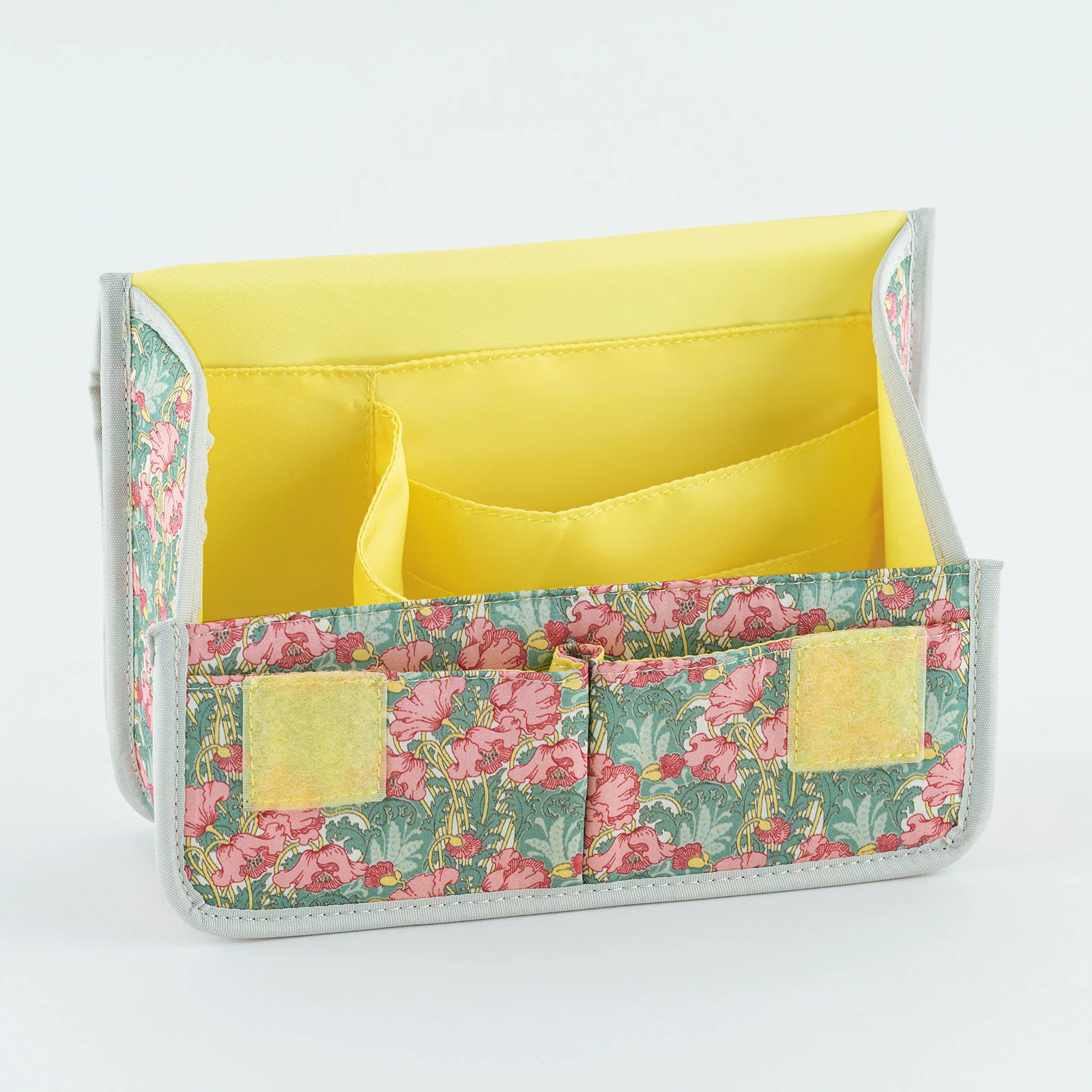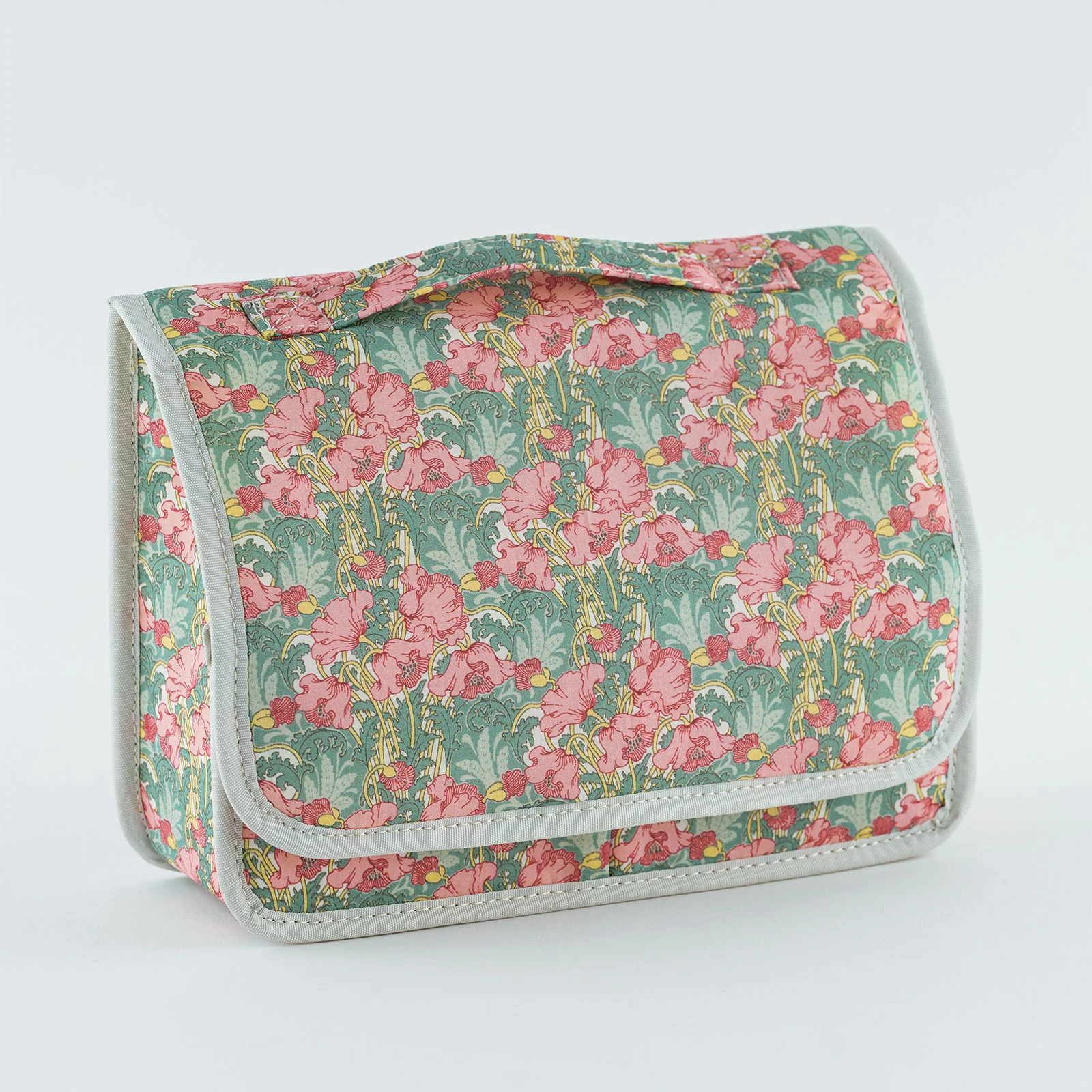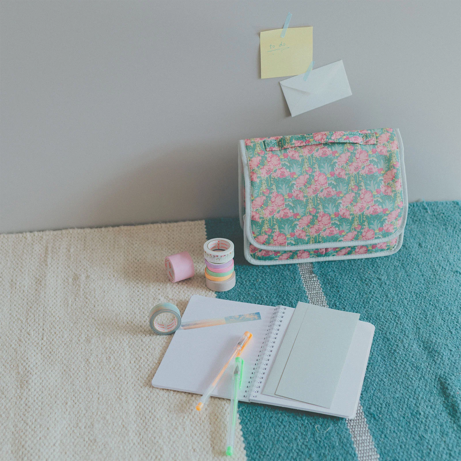 The lid opens wide, so even if you keep a lot of items in the pouch, you can still see what's inside. There's also a handle that makes it convenient for carrying around.