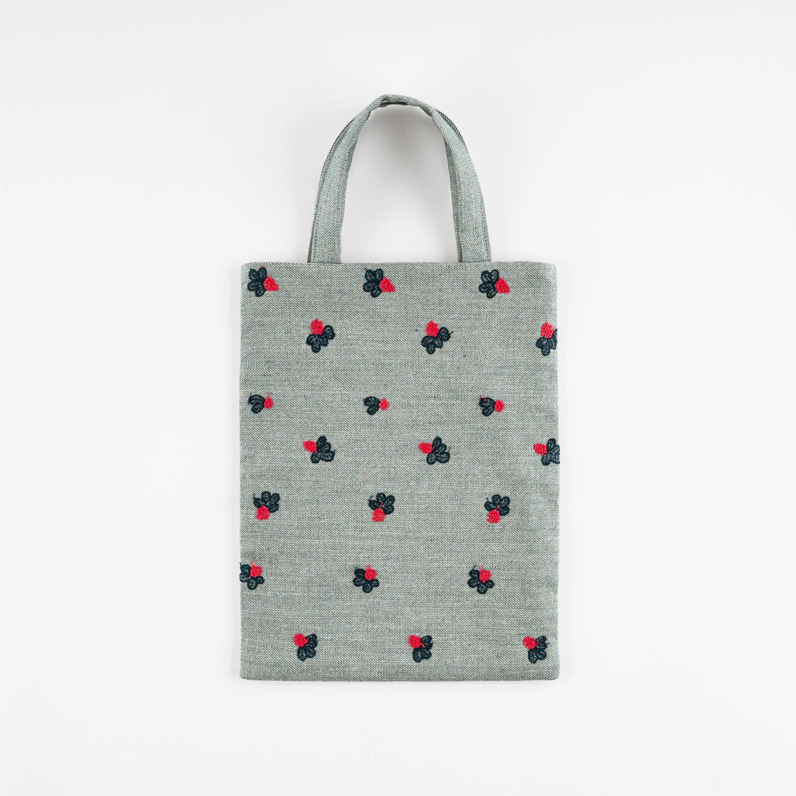 This small tote bag is made with the same textile used in the minä perhonen Hobonichi Techo light berry (Green) cover. The bag is big enough to fit a Hobonichi Techo Cousin along with your wallet and any other personal items you’ll need when you’re out.