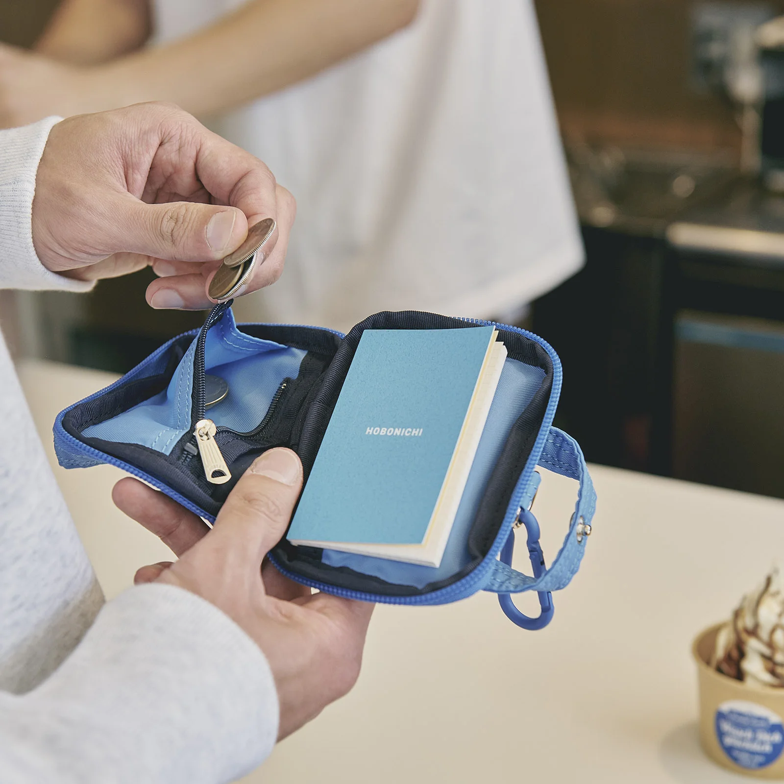 We created a mini wallet matching the Hobonichi Techo cover created with PORTER. This “Stroll Jr.” looks like a smaller version of the “Stroll” techo cover, small enough to fit in your hand yet functional. It now comes in three bright colors; yellow, red, and blue.