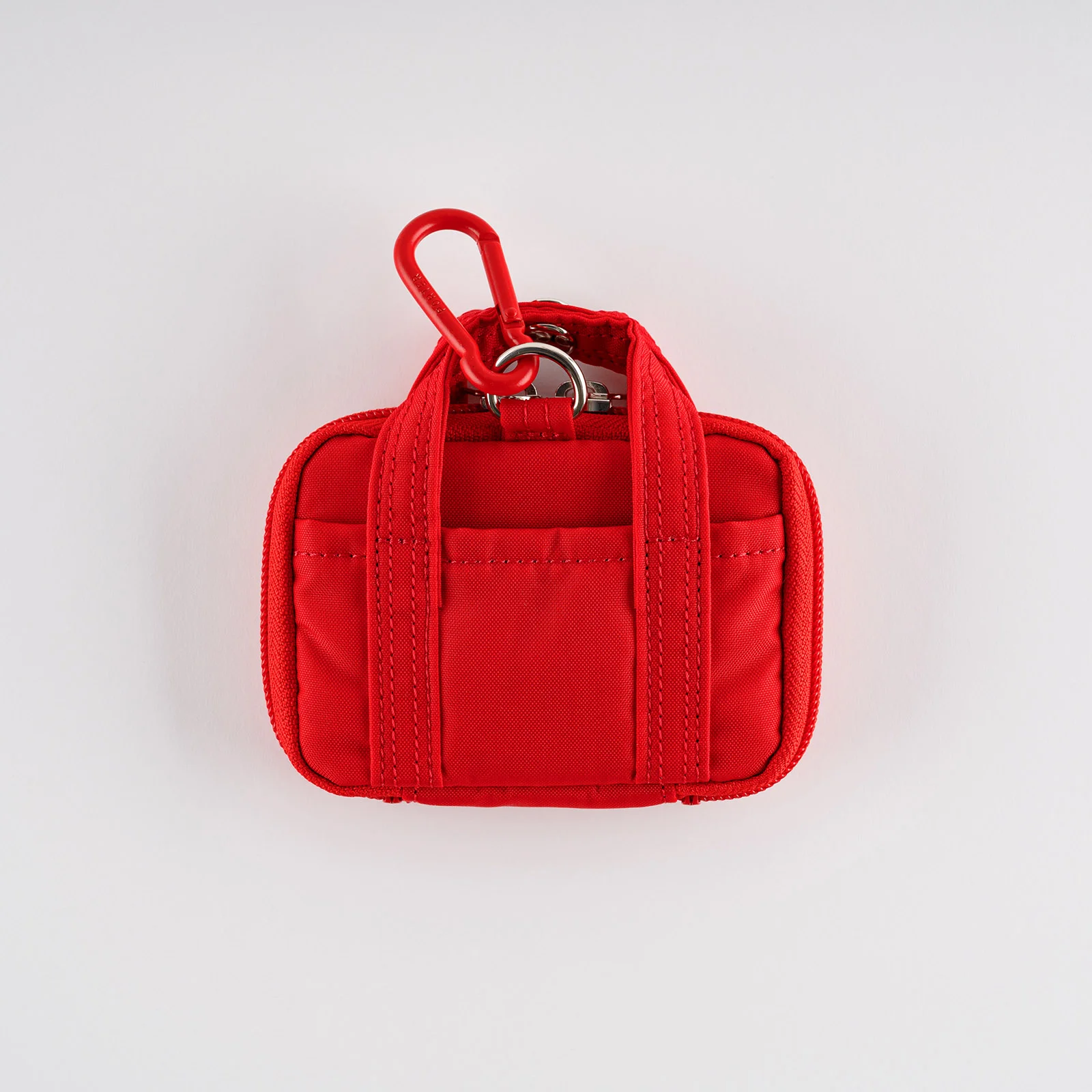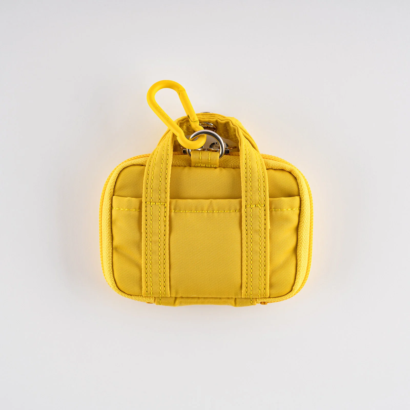 The wallet comes with a handy carabiner. The colors are either yellow, red, or blue, depending on the color of the wallet, and it can be detached. You can use it to attach the wallet to your pants or bag or hang it from your shoulder using a commercially-available shoulder strap.