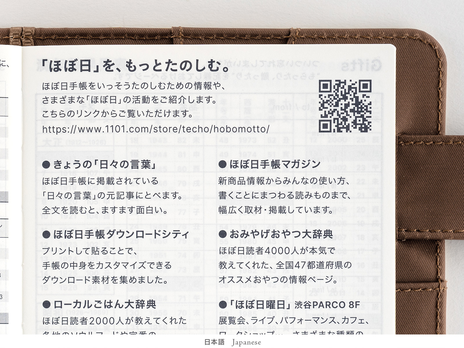 This page includes information to further enjoy your Hobonichi Techo and an introduction to what Hobonichi does. Also contains a link to a list of Japanese articles the quotes are selected from.