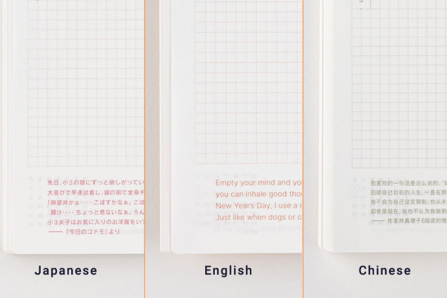 The Original, Cousin, and Weeks come in Japanese, English, and Simplified Chinese editions. The HON books (A6/A5) come in an English edition.