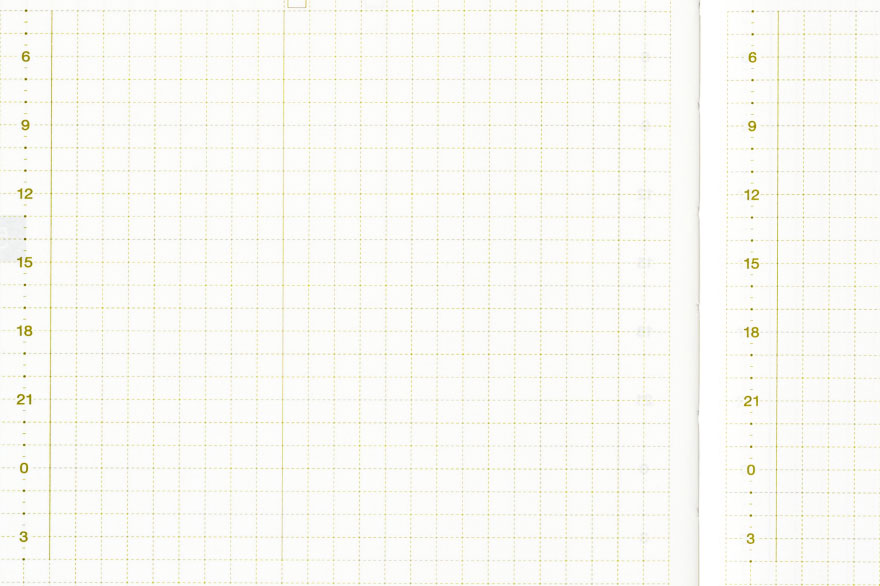 After much trial and error, our techo pages have 3.7mm* squares, which are the perfect size to either write within the lines, or ignore the lines and write outside them. The graph paper design makes it easy to draw charts and graphs, and the lines can provide a guide for pasting in papers or photographs totally straight.