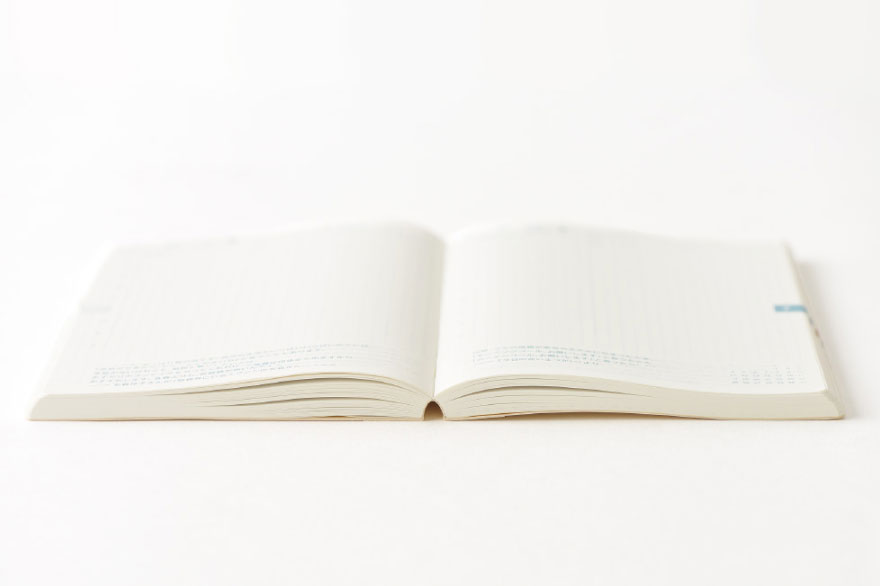 The book opens flat without the need for you to hold down the pages to keep the book open. This is achieved with thread-stitch binding, a bookbinding method that involves sewing and binding the book with thread. You’ll be impressed when you experience for yourself what it feels like to open the book and write in it so easily.