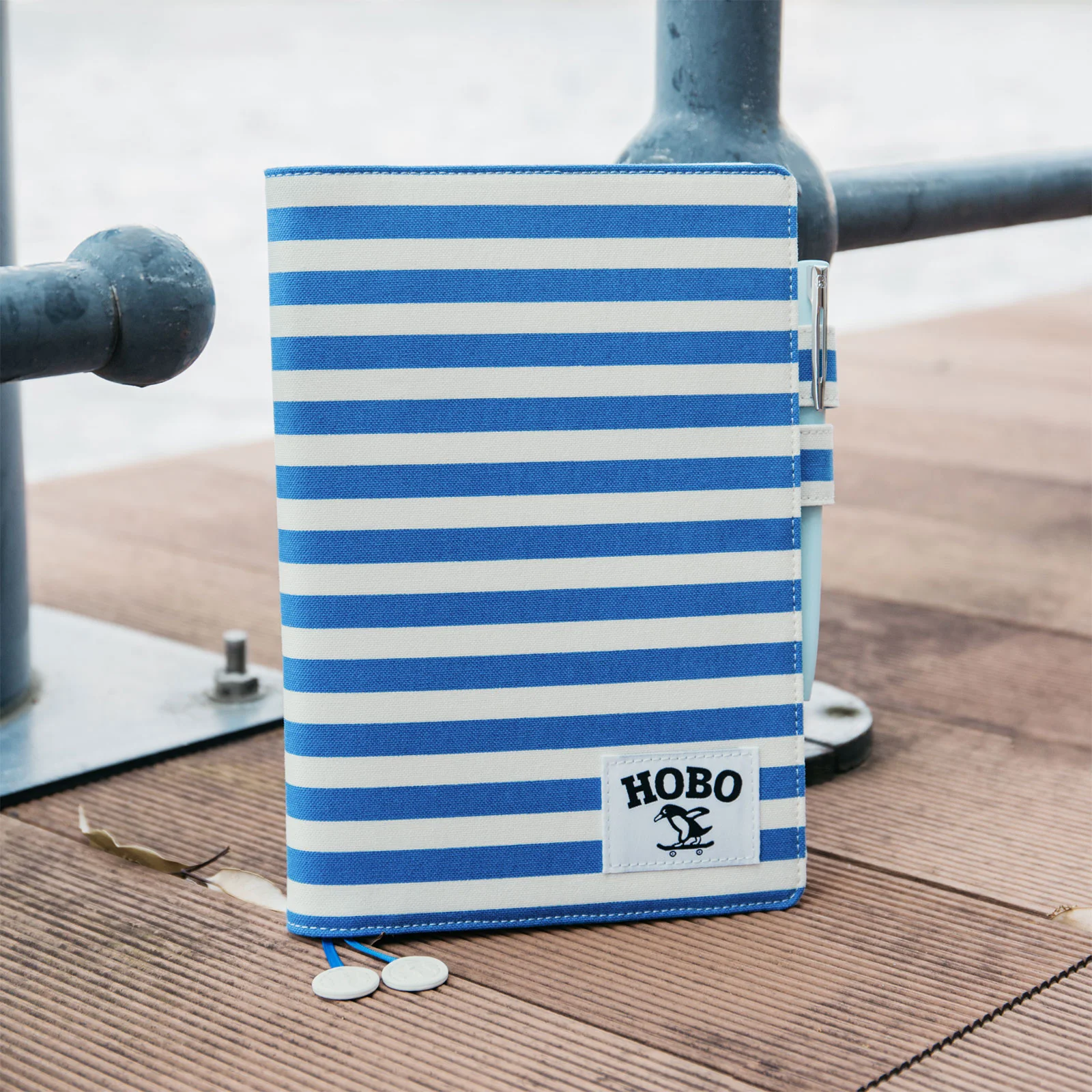 The skateboarding penguin and “Hobo” logo are printed on a tag to give the cover a sporty look.