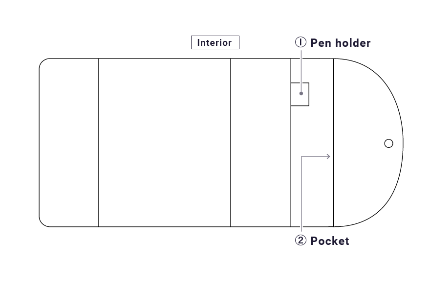 The features on the interior are made as simple as possible. The pen holder is designed to store the pen body. This cover doesn’t come with a bookmark, so please use the bookmark on the 5-Year Techo itself, or a bookmark of your choice.