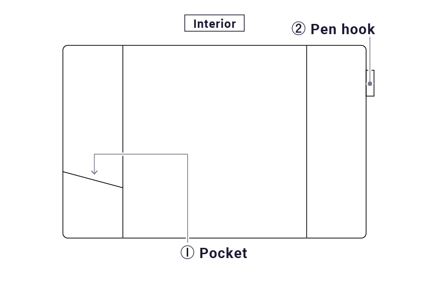 On the left side of the inner cover, there is a pocket for cards, sticky notes, and other small items.