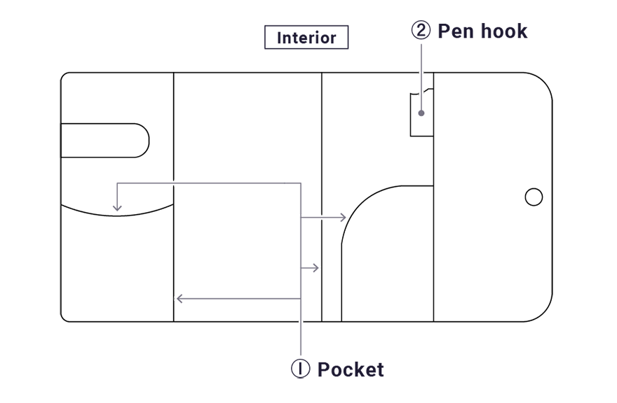 The inner right pocket has the logo for ONE PIECE magazine x Hobonichi and can hold postcards and tickets. The pen hook is designed to hold a pen by its clip.