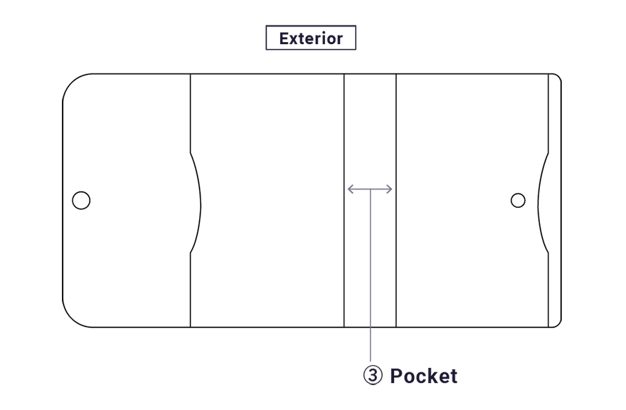 The left hand side of the inner cover has a pocket that can store cards or business cards. The top flap can be used as a bookmark.