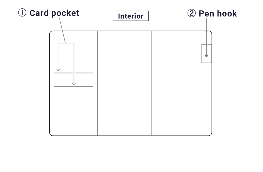 Slim cuts into the leather interior allow it to hold cards the size of a credit card or business card. The pen hook on the right side is designed to hold a pen by its clip.