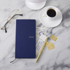 Deep Navy is navy in a deep tone, as the name suggests. The year 2024 on the cover is foil-pressed in gold, which shines in the light. The subtle color can also be used on any occasion and for work.